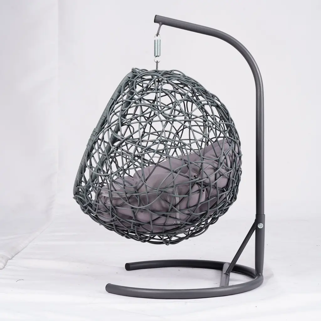 Cat Swing Bed With Stand & Cushion, Cat Egg Chair With Rattan Wicker Appearance, Indoor Hanging Swinging Cat Bed - Gray