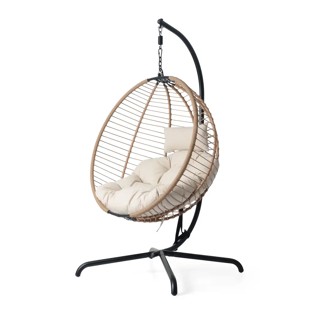Cat Swing Bed With Stand & Cushion, Cat Egg Chair With Rattan Wicker Appearance, Indoor Hanging Swinging Cat Bed - Yellow