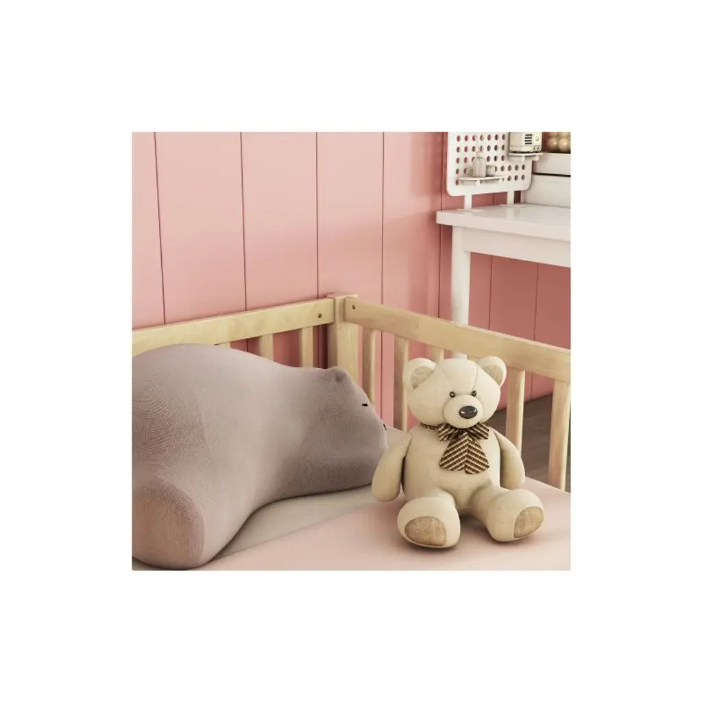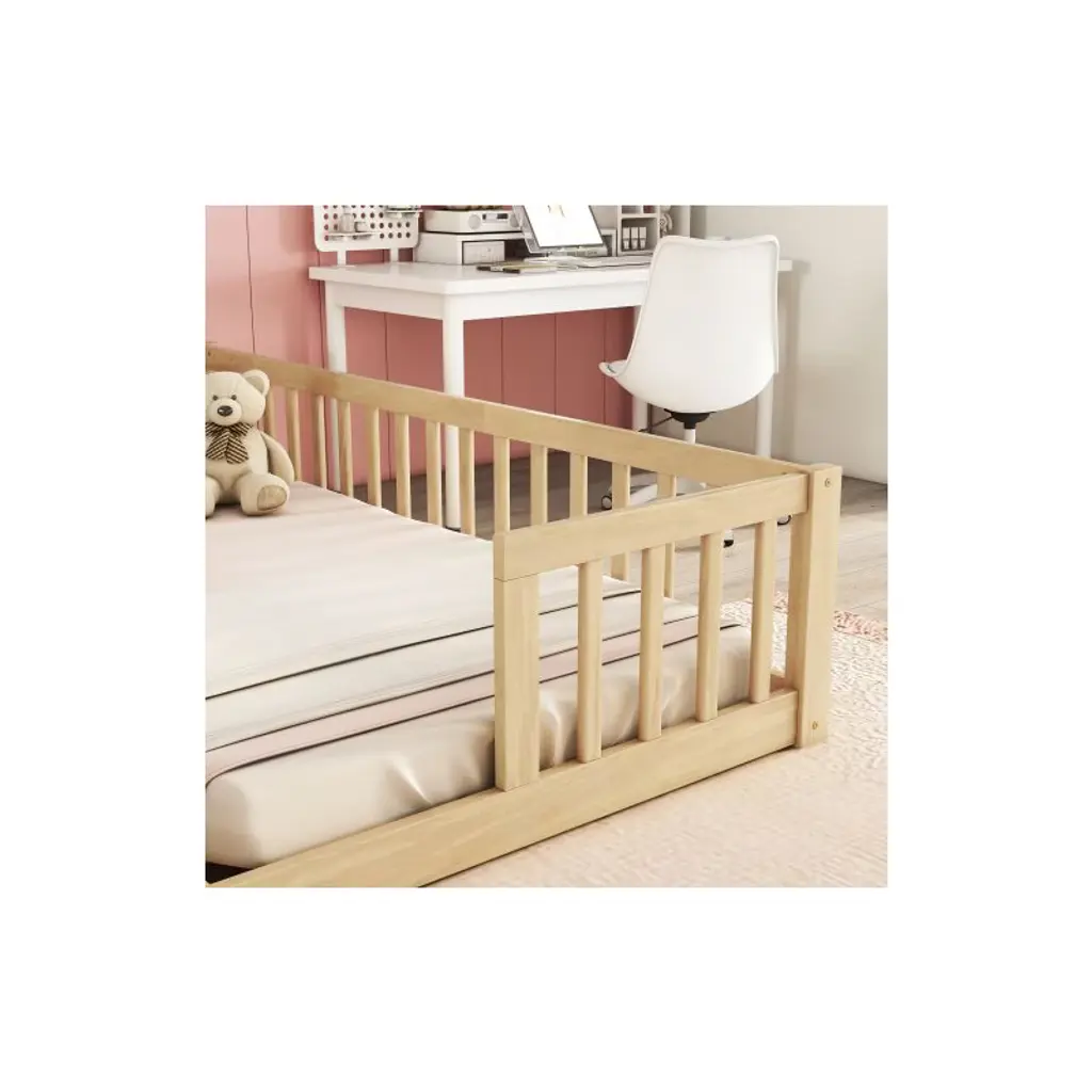 Double Twin-Size Floor Bed for Kids – Ideal for Shared BedroomsThis double twin-size floor bed is the perfect solution for siblings or shared kids' rooms. It features two separate twin sleeping areas within a single frame, promoting personal space while keeping kids close. Surrounded by secure guardrails on all sides, the bed ensures enhanced safety and stability during sleep or play.Crafted from high-quality pine wood and durable engineered wood, the structure is both sturdy and long-lasting. The minimalist design includes a shared center opening, making it easy for kids to climb in and out—perfect for fostering independence while creating a cozy zone for reading, playing, or resting.Product Highlights:Two individual twin-size sleeping spaces in one frameAll-around guardrails for added safetyCrafted from solid pine and engineered wood for durabilityLow-to-the-ground floor bed design for easy accessShared entry point for convenient in-and-out accessDelivered in one box with all tools and clear instructions includedFits two standard twin mattresses (not included); recommended mattress thickness: under 6 inchesBed Weight Capacity: 400 lbs (200 lbs +200 lbs)