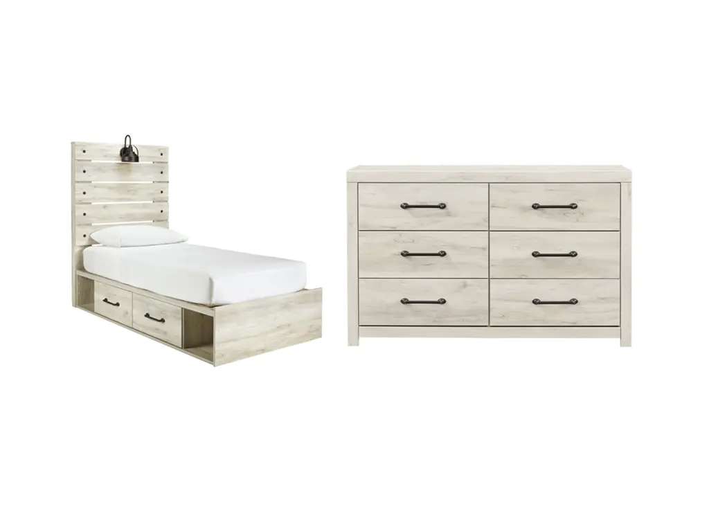 Relaxed yet striking, the Charbitt bedroom package brings casual beauty and function to your dream destination. A delightful two-tone treatment blends a fresh, replicated oak grain with a matte white finish that's easy to love. The set’s simplicity lends a contemporary touch that suits your bedroom's style to a T.