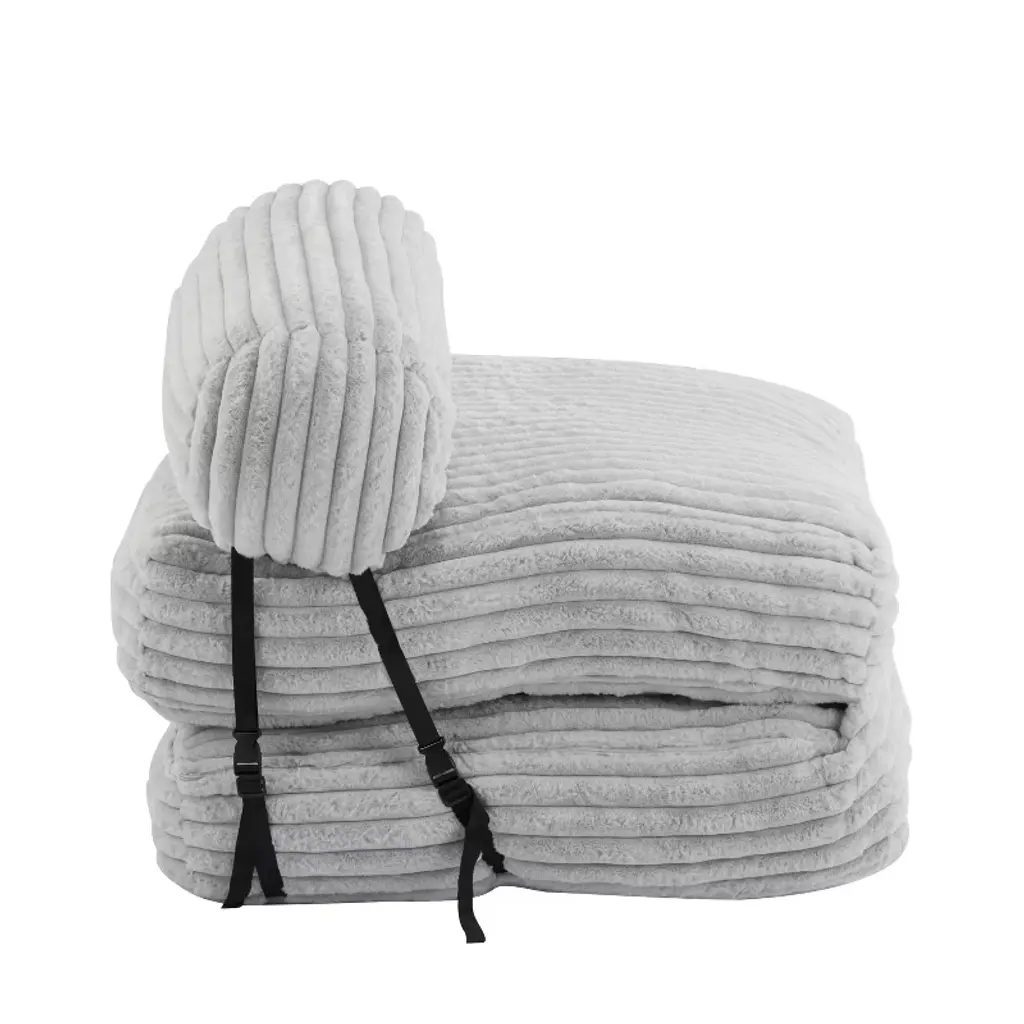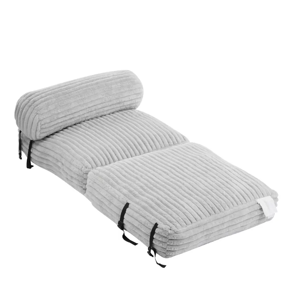 The bean bag is a versatile and stylish addition to any room. With a simple fold, it transforms from a cozy chair into a full-sized lounge bed, perfect for movie nights, naps, or guest sleepovers. The soft, cloud-like faux-fur fabric adds luxury and comfort, while the premium shredded foam filling contours to your body, providing lasting support. The included cylindrical pillow serves as both neck and lumbar support, making it an ideal solution for small spaces without compromising on comfort. Feature: Foldable DesignFabric Material: Faux Fur Filler: Foam No Assembly Required Bean Bag Chair Dimensions: 37.00" W X 35.00" D X 27.50"H Convertible Lounge Bed Dimensions: 37.00" W X 70.00" D X 20.00"H Seat Height: 17.75" Weight Capacity: 250 lbs