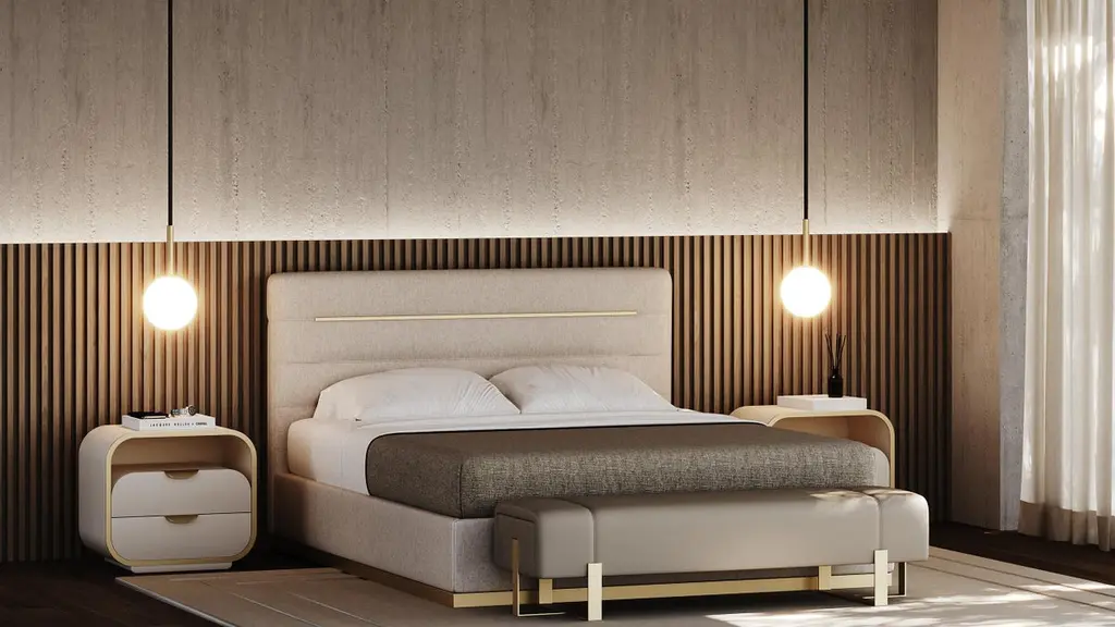 Vesper bed is a striking fusion of contemporary elegance and serene comfort, designed to transform your bedroom into a sophisticated sanctuary. Its sleek, minimalist lines and understated detailing create a refined aesthetic that enhances any décor. The bed features plush upholstery and a meticulously crafted frame, offering a restful retreat with a touch of modern luxury. Inspired by the tranquil beauty of twilight, the Vesper bed provides a calming atmosphere, inviting you to unwind and relax in style.