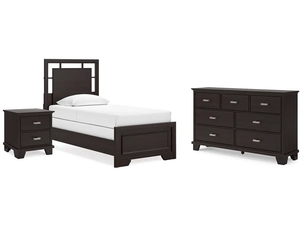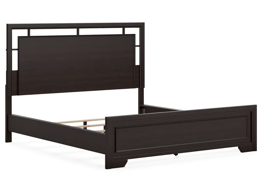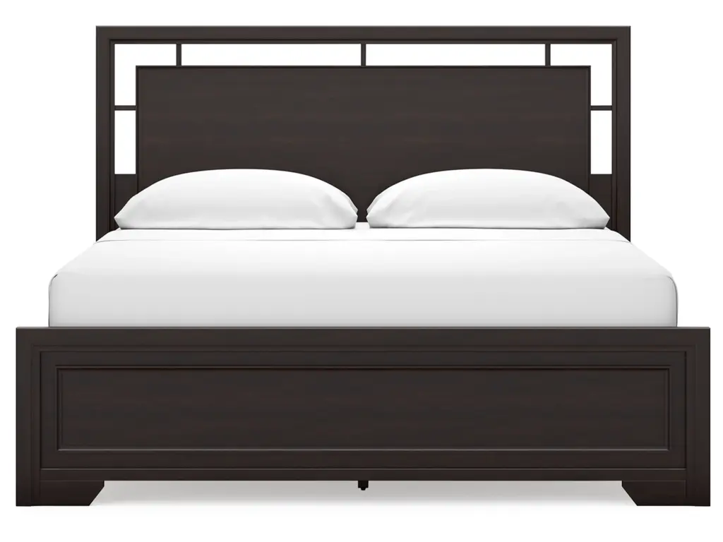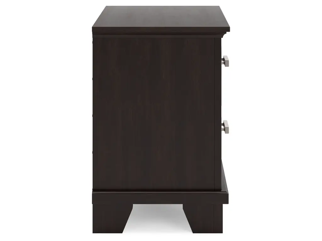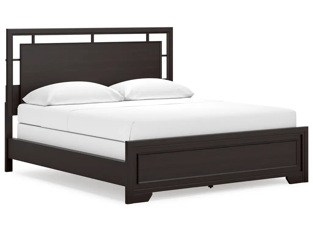 Feast your eyes on the richly versatile Covetown bedroom package. Its traditional-inspired dark brown finish blends with contemporary nickel-tone pulls, creating a stunning look that's not too stuffy or too trendy.