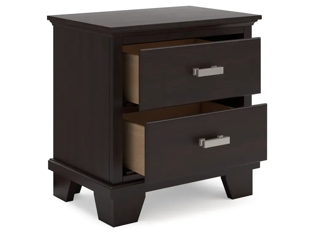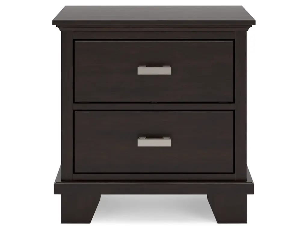 Feast your eyes on the richly versatile Covetown bedroom . Its traditional-inspired dark brown finish blends with contemporary nickel-tone pulls, creating a stunning look that's not too stuffy or too trendy.