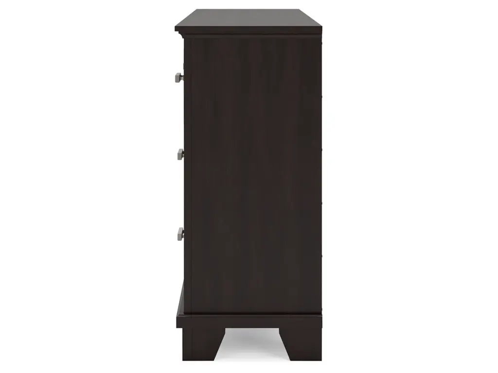 Feast your eyes on the richly versatile Covetown bedroom package. Its traditional-inspired dark brown finish effortlessly blends with contemporary details to create a stunning look that's not too stuffy or too trendy. Such a refined way to wake up your bedroom style.