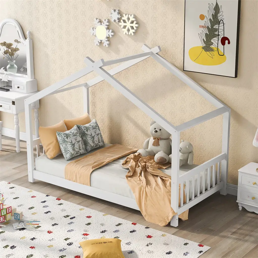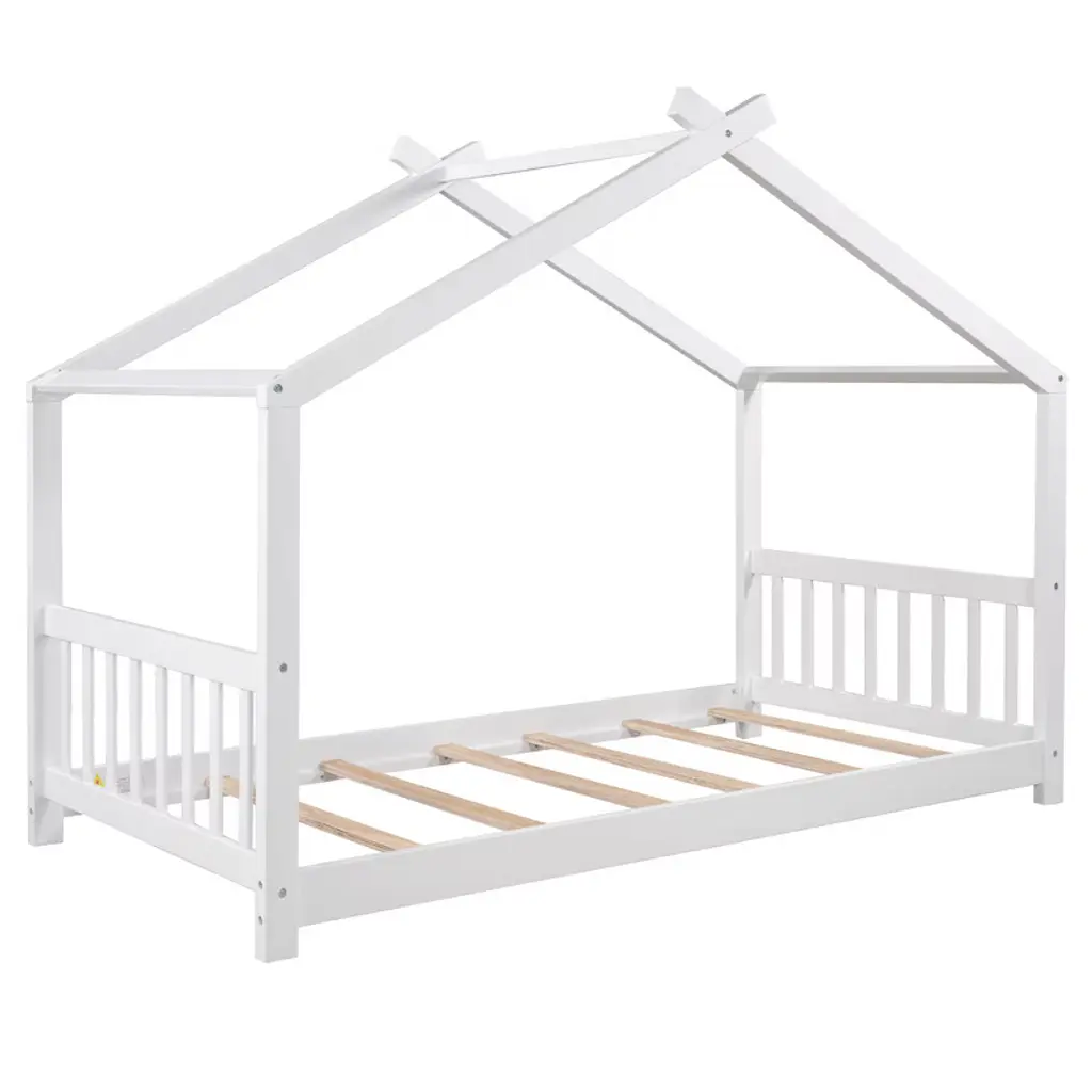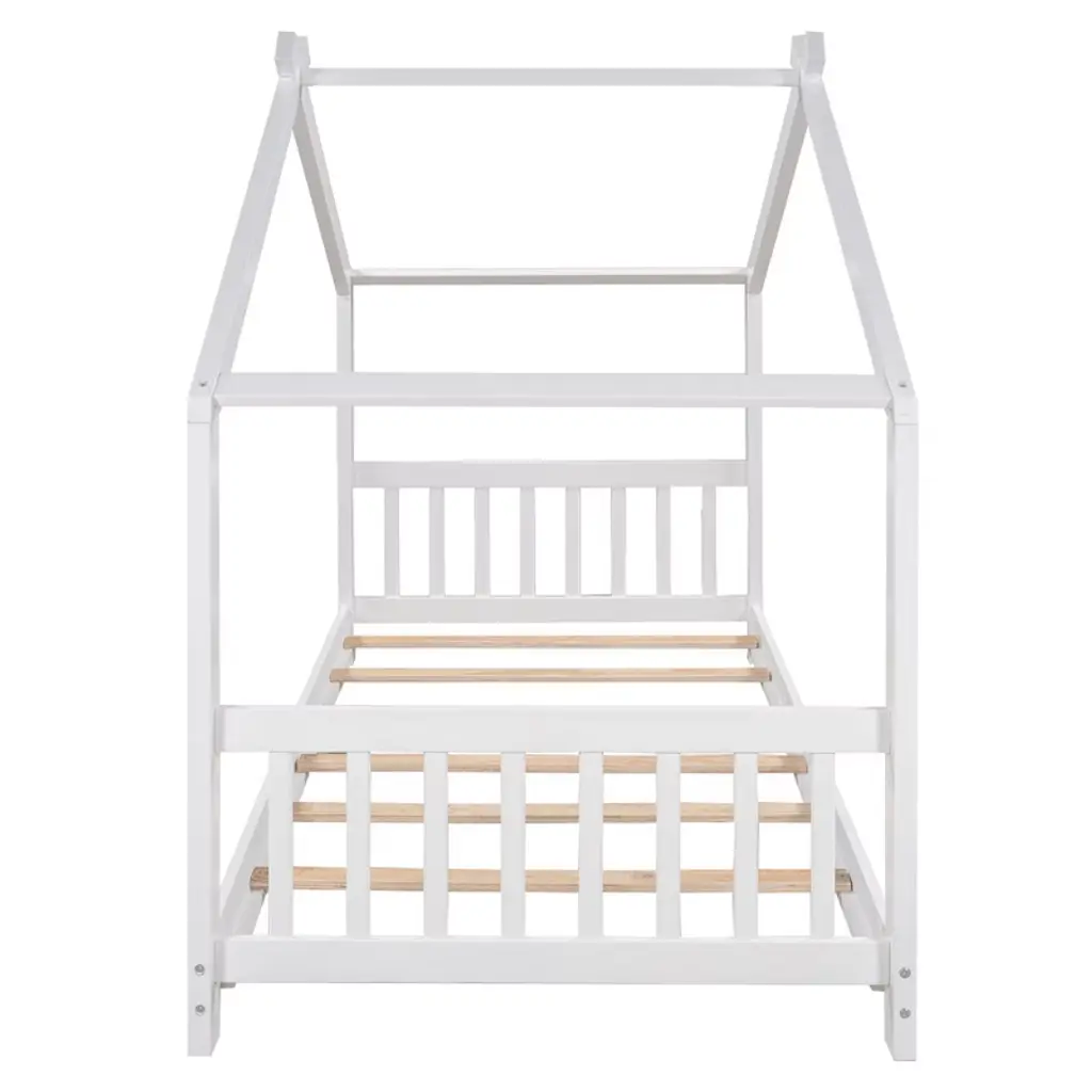 Ignite your child¡¯s imagination with this charming twin-size house platform bed! Featuring a playful roof design, headboard, and footboard, it adds a fun, modern element to any bedroom. Crafted from high-quality pine wood and MDF, this durable frame combines safety, creativity, and lasting appeal.