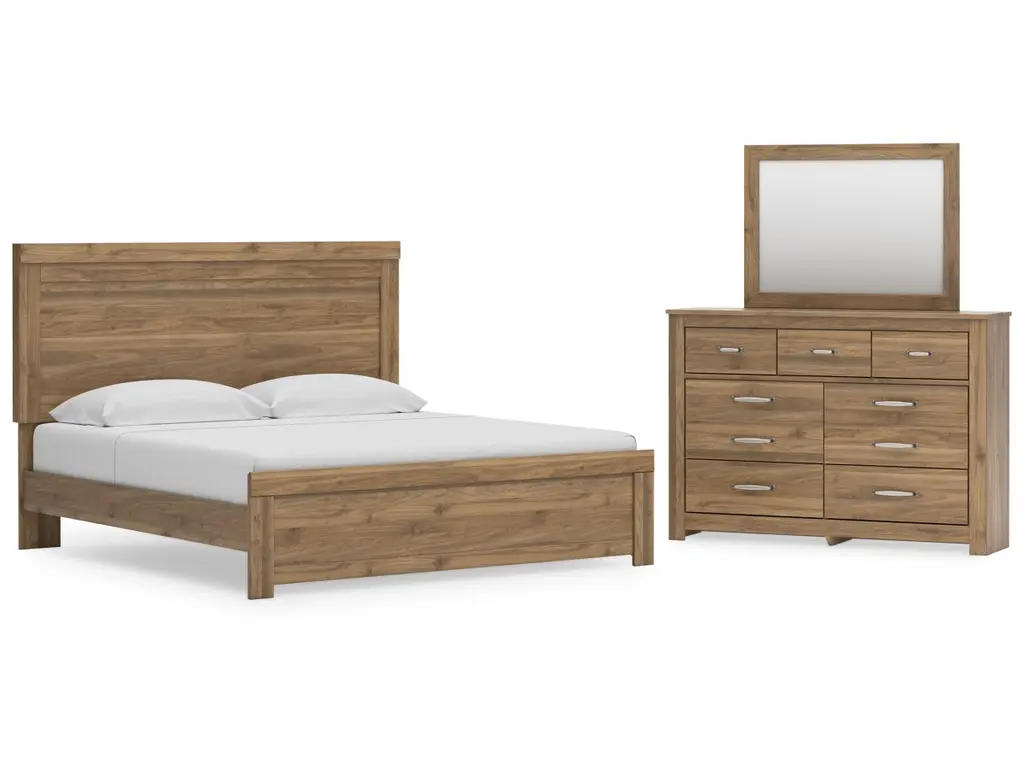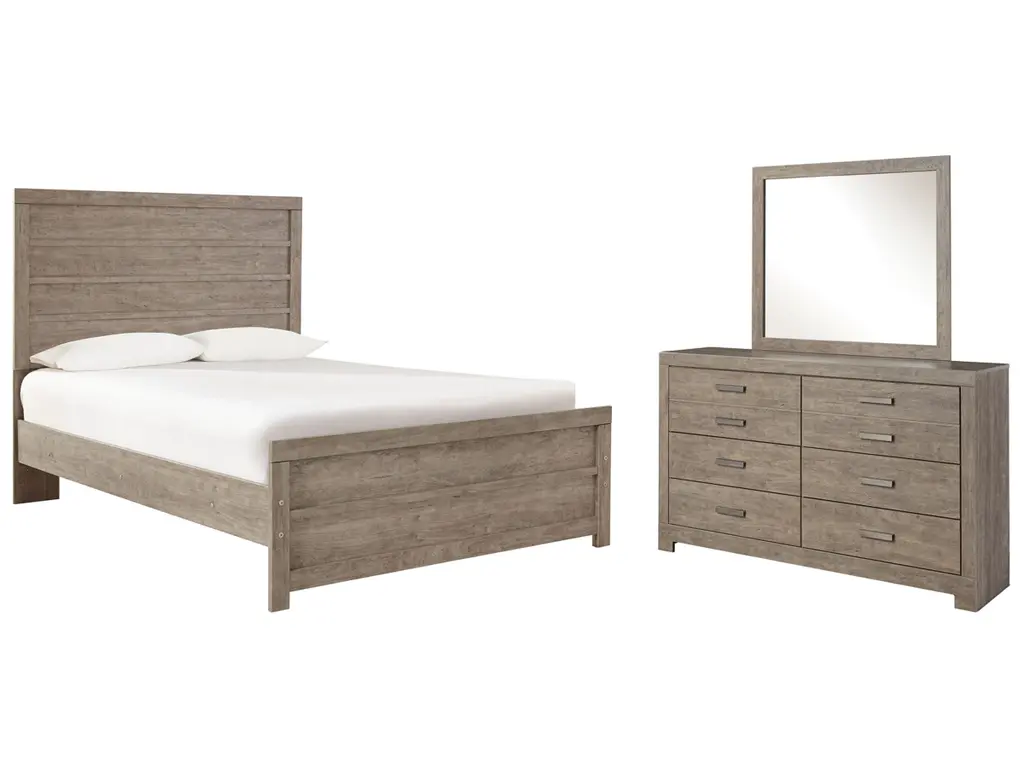 The Culverbach full panel bed, dresser and mirror’s weathered driftwood finish evokes such an ethereal vibe—exactly what you need for a serene bedroom suite. The full panel bed’s chunky moulding creates a plank-like effect while clean lines make for a timeless look you’ll love living with for years to come and the six-drawer dresser offers ample storage for a wardrobe and spare bed linens.