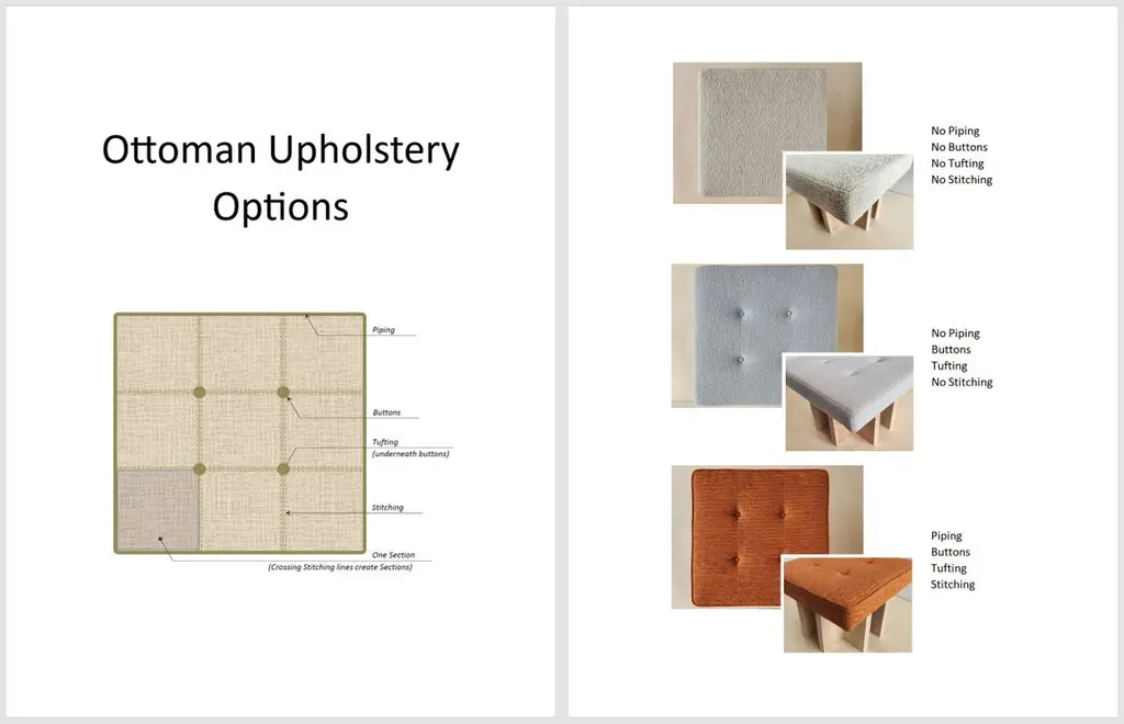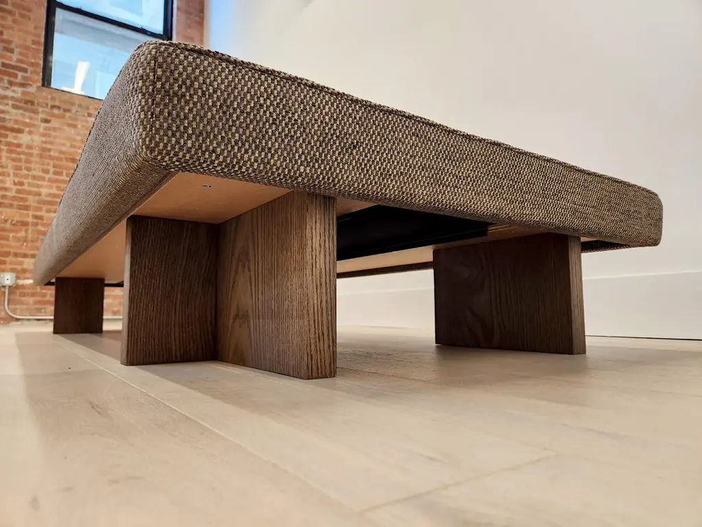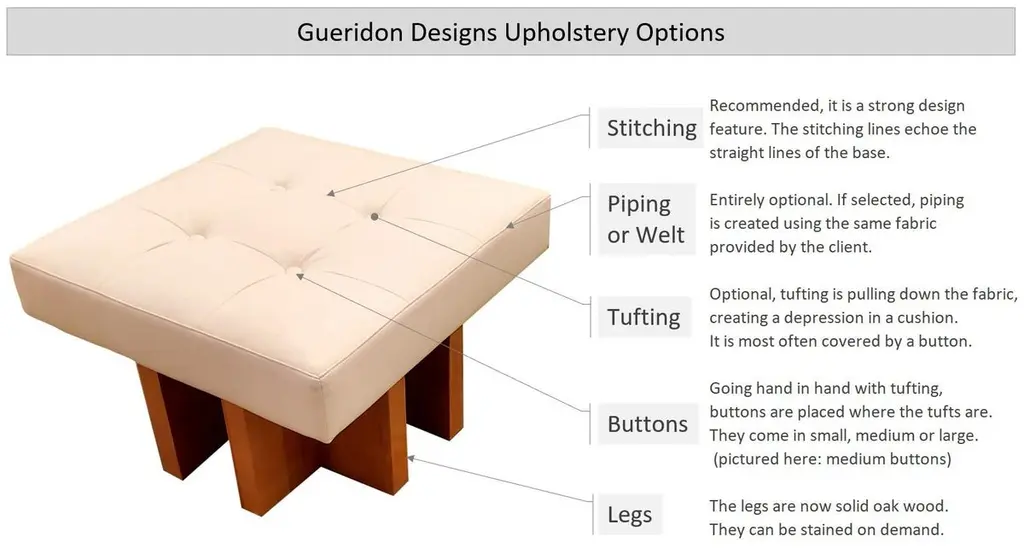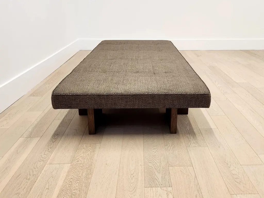 INTRODUCTIONGueridon handmade day beds are made to order to your liking and specifications. 100% made in USA.Following the success of its ottomans, GUERIDON launched a full line of fully customizable ottomans, stools, benches, and day beds. All designs share the same 4 L shaped legs, signature of the Gueridon line.We offer a wide range of customizations. Here is the idea.Only you know what’s best to match your interior. Therefore, you provide us with your fabric (COM). Size, upholstery, wood staining? Your choice: we offer a wide range of options.From the same original base with 4 thick L shaped legs, we can also build an ottoman, a stool, or a day bed.HOW IT WORKS- YOU give us your requirements (see OPTIONS 1, 2 and 3 below)- WE tell you the necessary yardage- WE provide you with a detailed quote- YOU send us the fabric- YOU give us your upholstery choices (see OPTION 4 below)PRODUCTION LEAD TIME: 3 WEEKSLIST OF OPTIONS1. DIMENSIONS- Length- Width- Height- Cushion Thickness2. LEG DIMENSIONS- L shaped Legs Length (long part of the "L")- L shaped Legs Width (short part of the "L")3. LEG STAINS- Satin clear varnish on solid oak wood (No charge)- Other stains ($330)4. UPHOLSTERY - Piping- Stitching- Tufting- Buttons(All upholstery options included in the price)CONTACT US FOR PRICING AND CUSTOMIZATION OPTIONS!