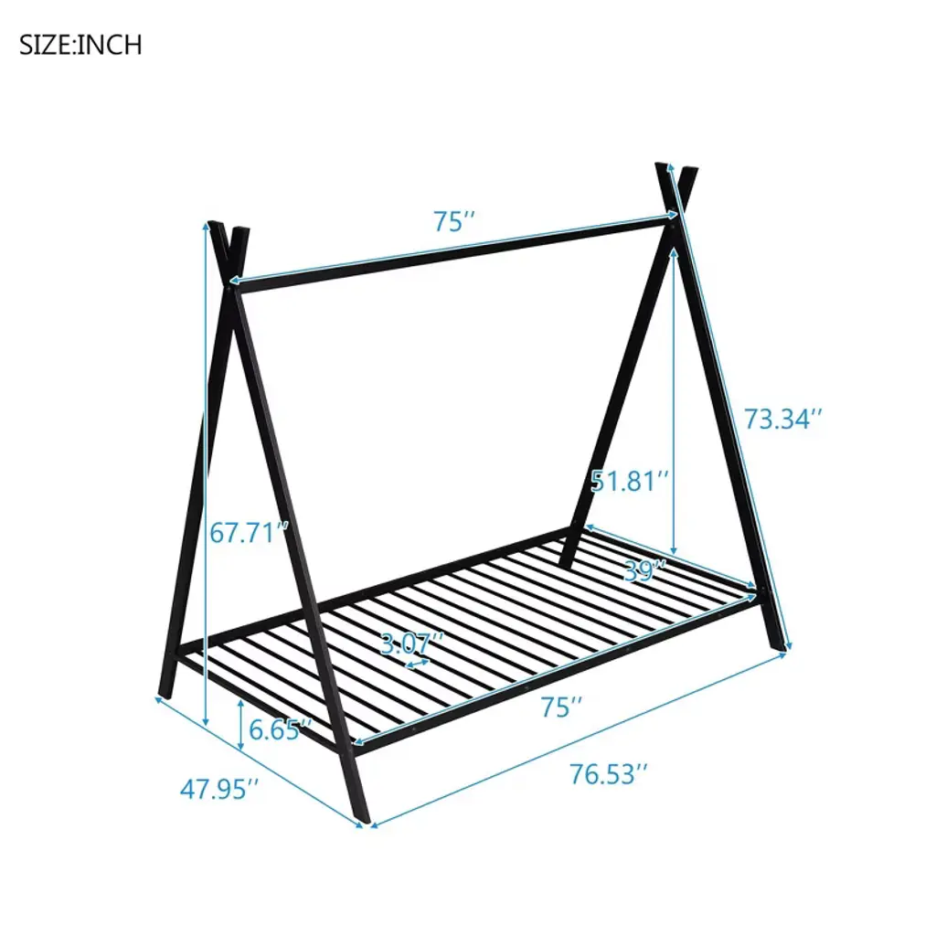 House Bed Tent Bed Frame Twin Size Metal Floor Play House Bed with Slat for Kids Girls Boys No Box This super cool house bed is ideal for your family. You can create a cool bedroom hideaway and allow your child's imagination to take flight. You can decorate it according to your child's personality due to its versatile and simple framework like drape fabric, wind fairy lights, or attach toys. This Kids metal house bed is also perfect as a reading nook or a playhouse . This bed frame is made of Metal, making it exceedingly sturdy and durable. with stable slat let the bed frame Weight capacity reach 350LBS. The opportunities are endless to create a fun play environment for your kids, They will look forward to bedtime,reading time. It's a house within a home.