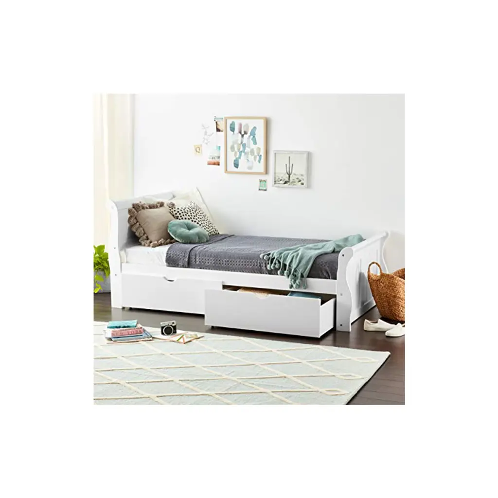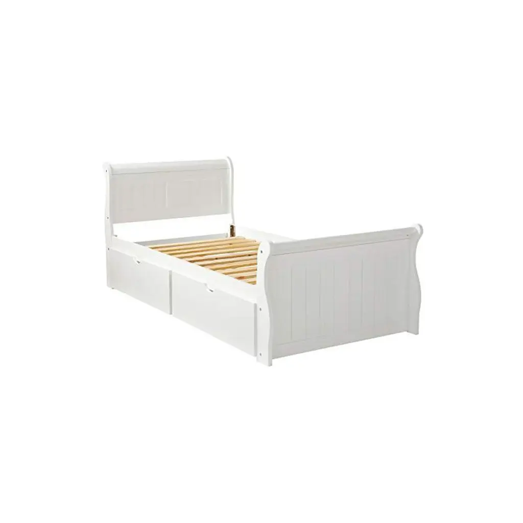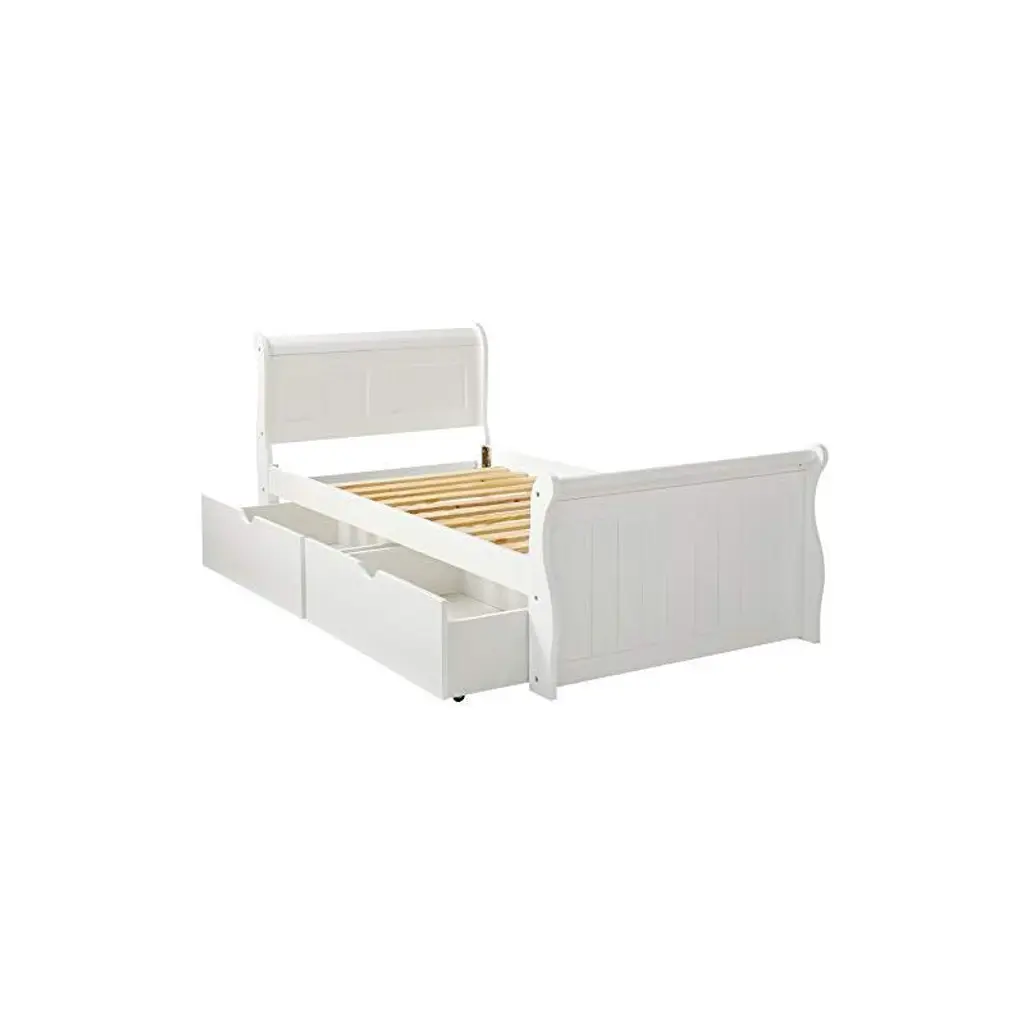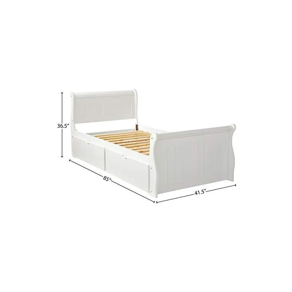 Donco Kids Sleigh Twin White Bed With Dual Underbed Drawers