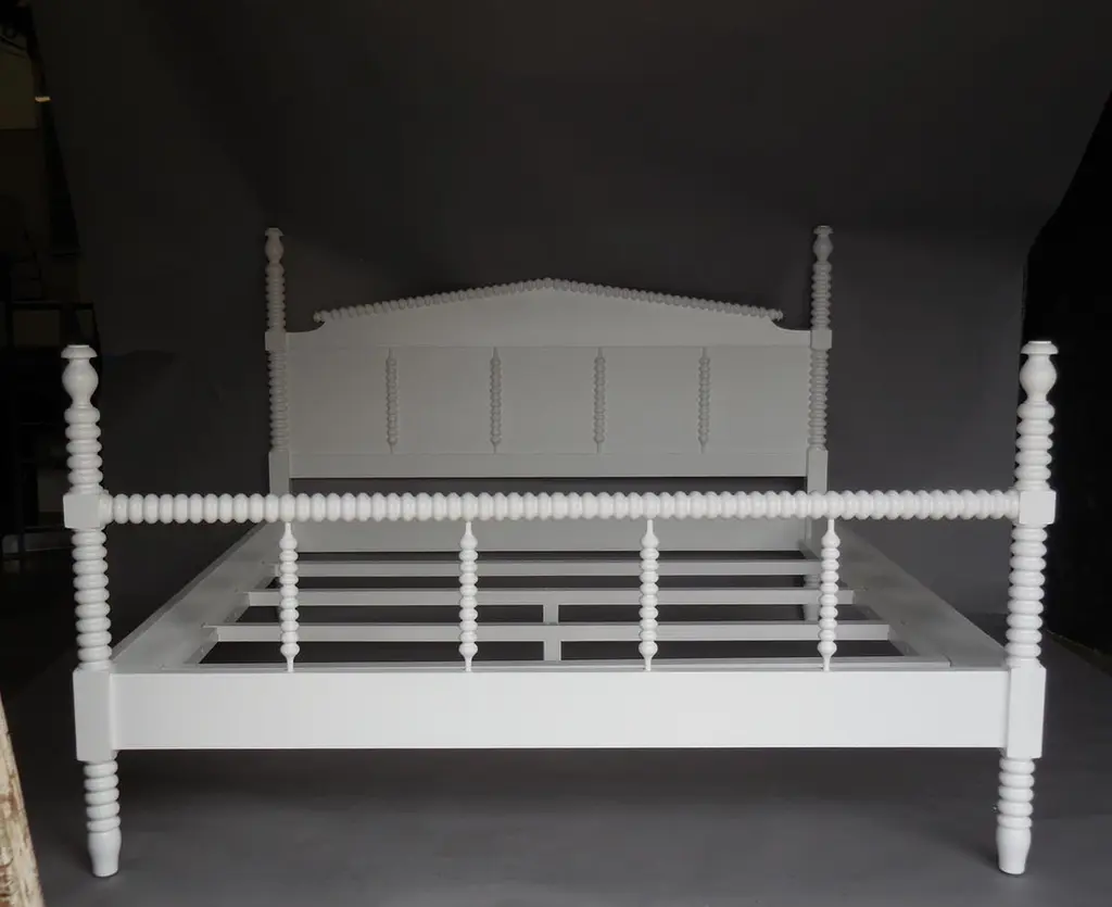 Dos Gallos Custom Painted Wood King-Size Bobbin Bed With Spindle Footboard