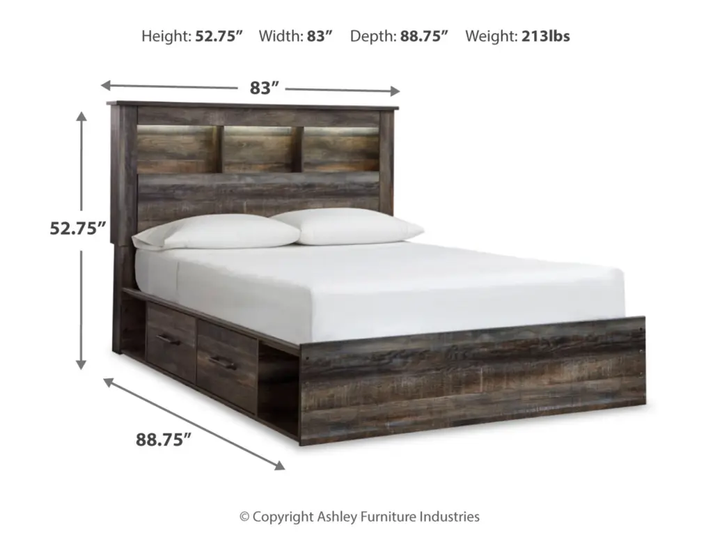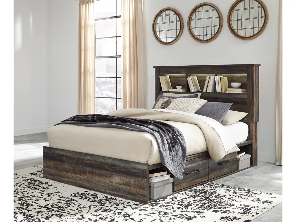 Drystan Queen Bookcase Bed With 2 Storage Drawers And 2 Cubbies