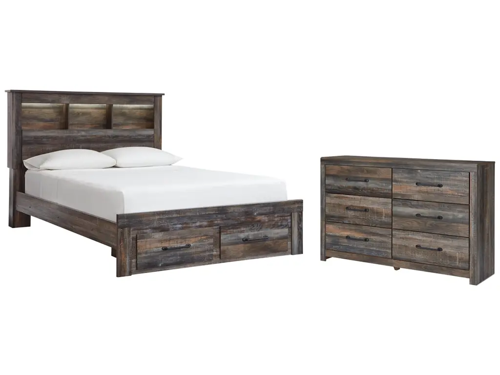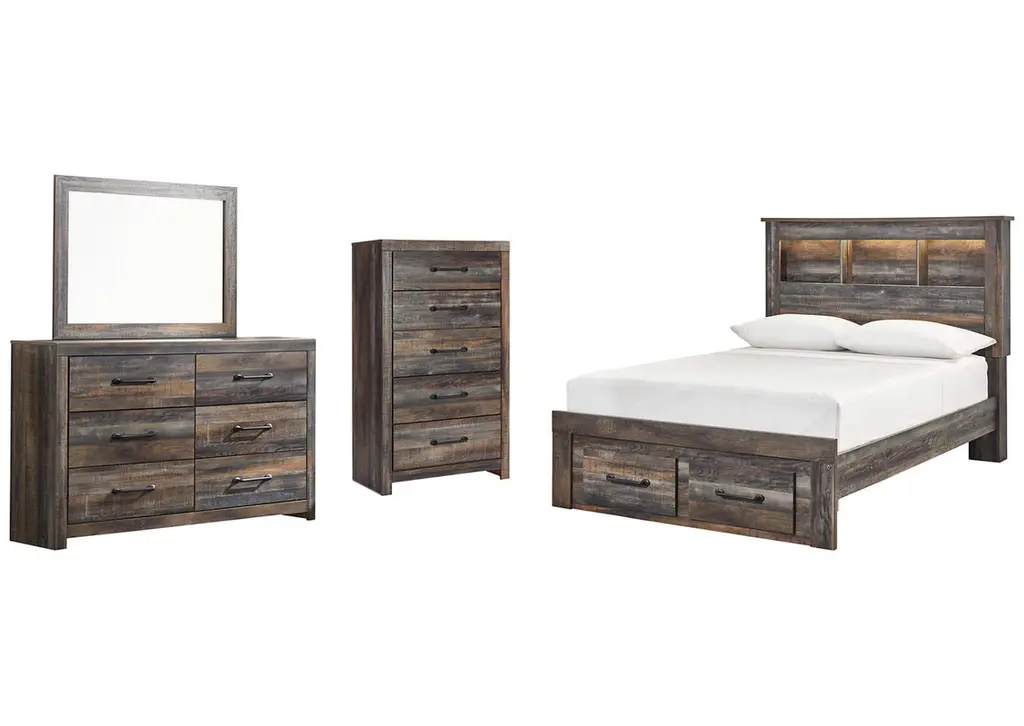Drystan Queen Panel Bed With 2 Storage Drawers With Mirrored Dresser, Chest And Nightstand