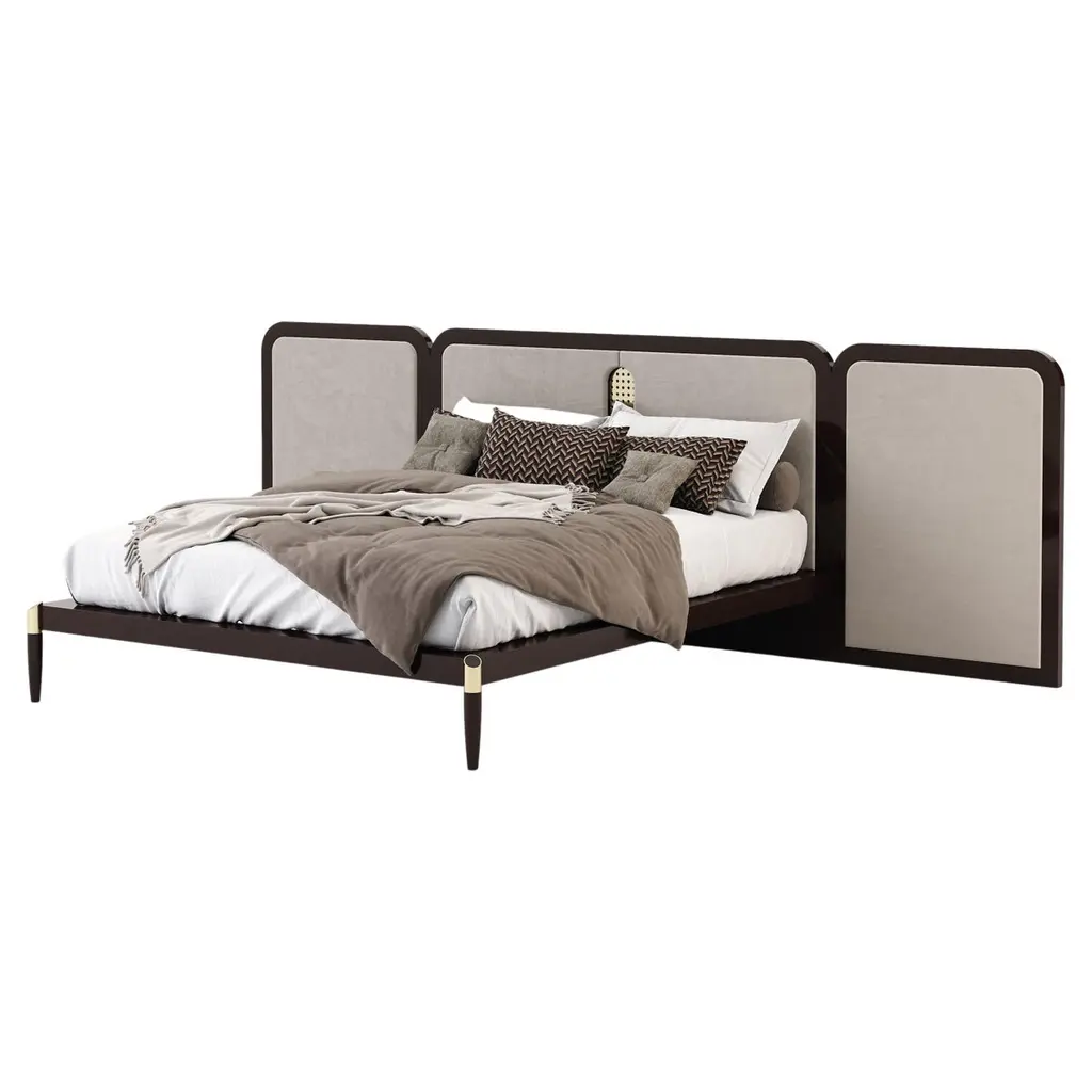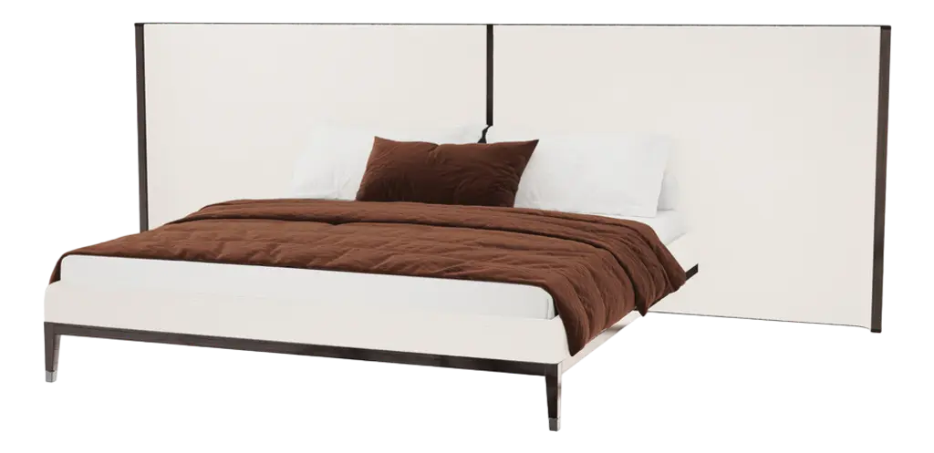Eden is a bed whose elegance is evident in its clean lines and masterful craftsmanship, enhanced by the use of a handsomely luxurious material like cowhide, a material singularly able to imbue any object with tangible added value, impervious to the effects of time and fleeting fashions. The headboard is in contoured wood covered in cowhide and available in a vast range of colors. In the Eden Plus model, the cowhide-upholstered headboard is larger and features adjustable side panels that heighten the bed’s feel of sophisticated intimacy. The perimeter frame can be upholstered in fabric or leather and the upholstery is removable. The Eden bed comes in several sizes and is available in versions with base composed of a single perimeter frame, rigid base, platform base with height-adjustable slats and base with storage compartment, handy for storing pillows, blankets and bed linens.TECHNICAL SPECIFICATIONSUpholstered base in wood with polyurethane padding covered with a protective fabric lining. Storage base with mechanism and platform fitted with wooden slats Base with platform fitted with wooden slats, adjustable at different heights: 1°- 4,5cm, 2°- 7,3cm, 3° - 9,5cm, 4° - 12,3cm. If you use your own platform, please verify in advance its position inside the bedframe Headboard in wood covered with hide leather: russian red (5008) white (5007), olive (5006), black (5005), dark brown (5004), dark brown extra (5013), grey (5003), sand (5001), tobacco (5015) Feet cylindrical in black plastic. Mattress dimensions to be verified in the sprice list. Upholstery removable fabric or leather coversMATERIALS Frame: hide leather - suede Upholstery: cashmere - cotton - leather - nabuk - linen - mixed composition - velvet