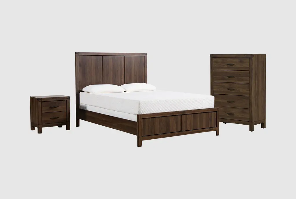 Nate + Jeremiah’s Estate bedroom collection offers a seamless blend of classic and contemporary elements inspired by Napa Country estate-style living. Clean lines paired with a rich patina and antique details create warm yet refined designs. Featuring solid hardwood and knotty white oak veneer with subtle distressing, each piece showcases exquisite craftsmanship. The collection is also available in black pine.