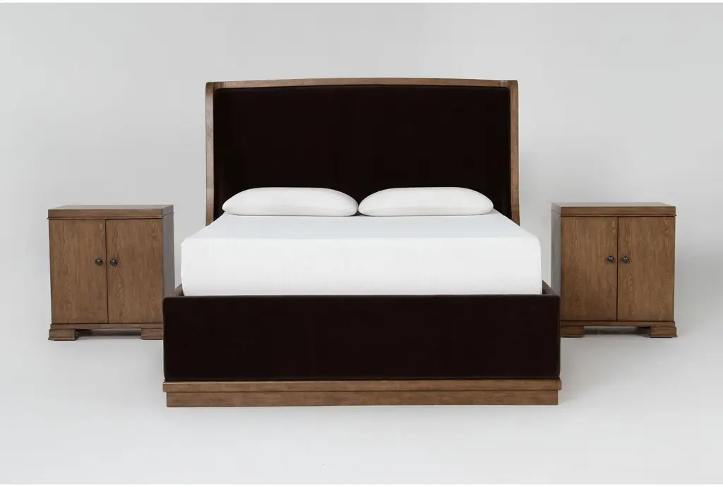 Estate California King Upholstered Shelter 3 Piece Bedroom Set With 2 3-Drawer Nightstands By Nate Berkus + Jeremiah Brent