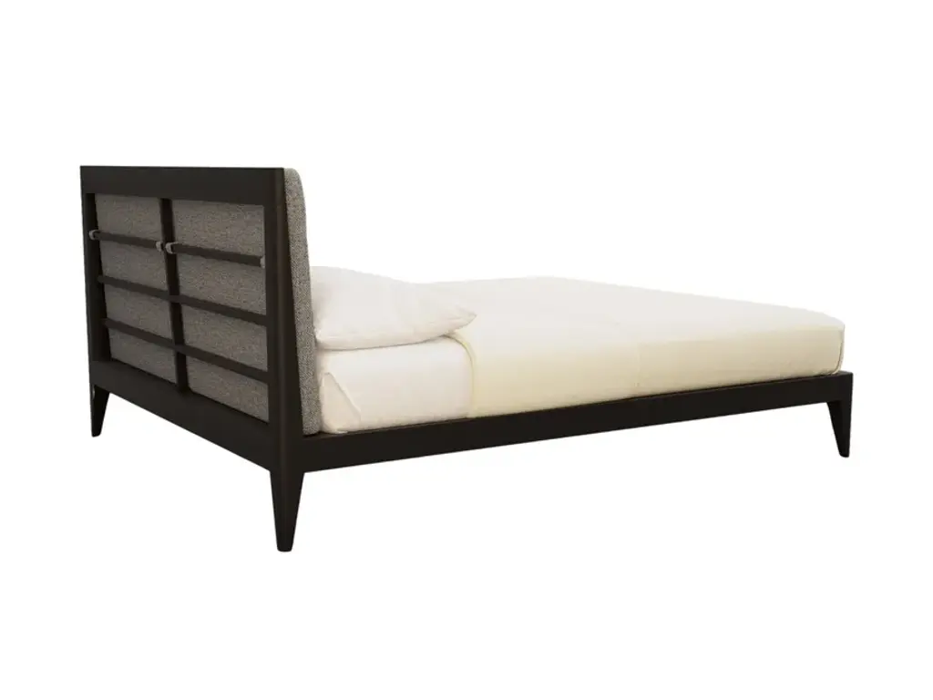 Felice - Double bed made of cherry wood with leather cushions, mattress support made of slats of beech wood.