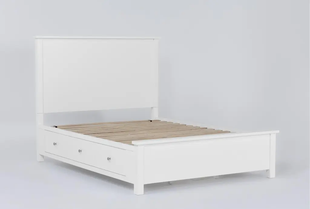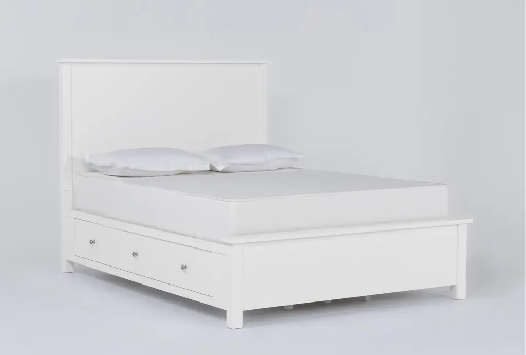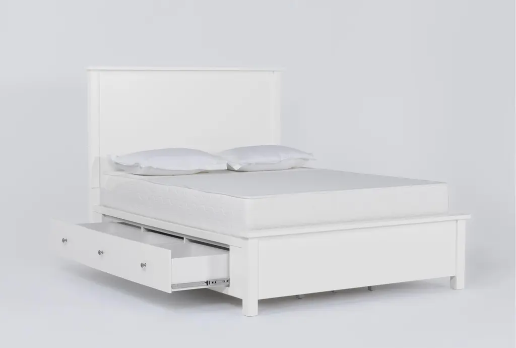The Felipe White Queen Platform Bed with Storage is the perfect addition to your bedroom, offering both style and functionality. Its casual design and soft white color effortlessly blend with any decor, while the sturdy rubberwood and MDF construction ensures durability. This bed provides ample storage with dovetail drawers and side metal glides, making it an ideal choice for maximizing space.