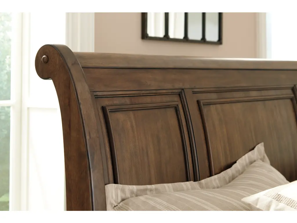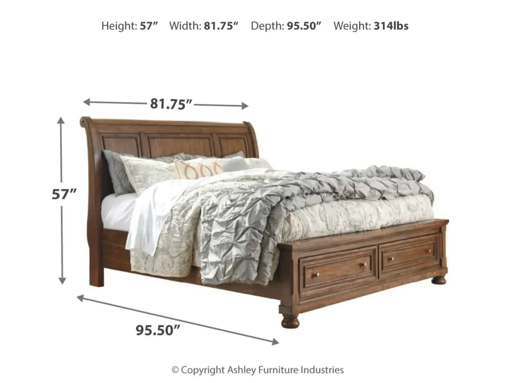 Flynnter King Sleigh Bed With 2 Storage Drawers With Mirrored Dresser