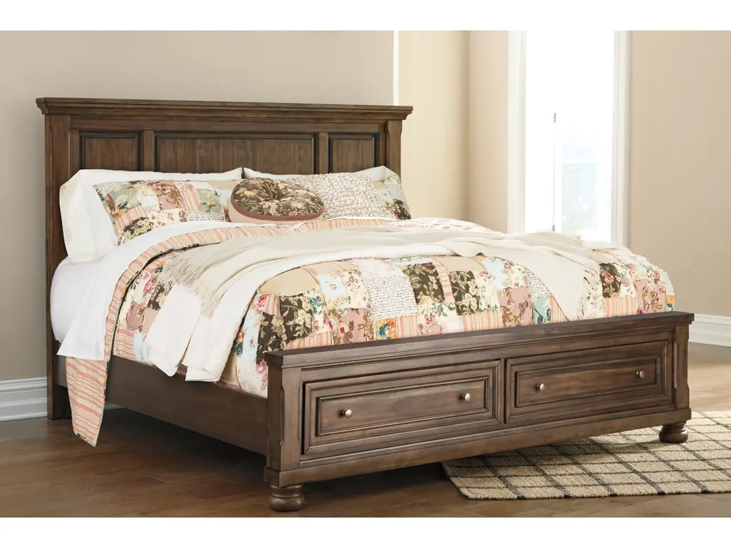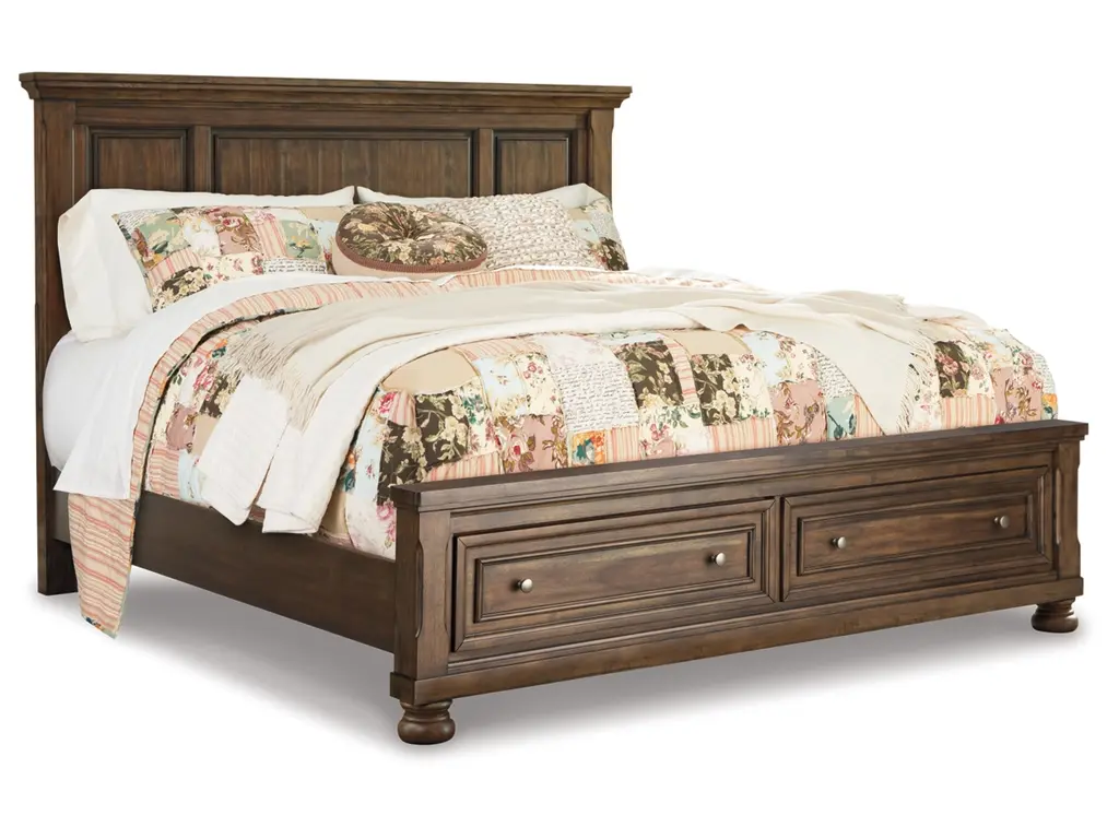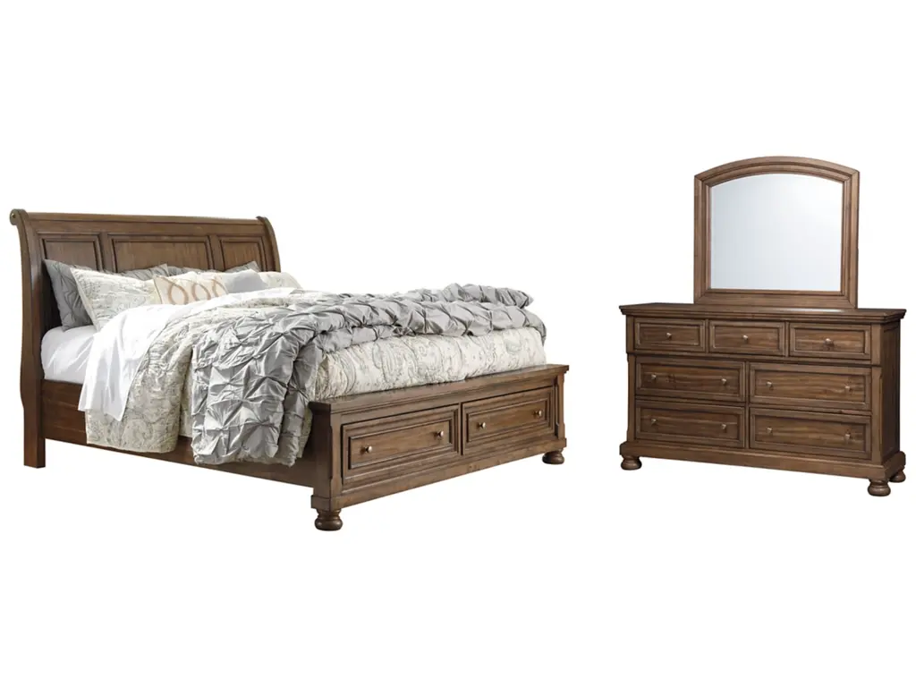Flynnter Queen Panel Bed With 2 Storage Drawers With Mirrored Dresser