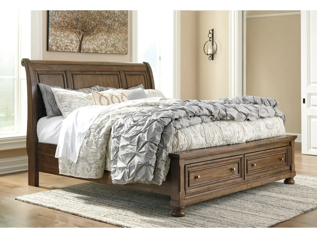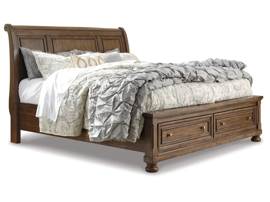 Flynnter Queen Sleigh Bed With 2 Storage Drawers With Mirrored Dresser