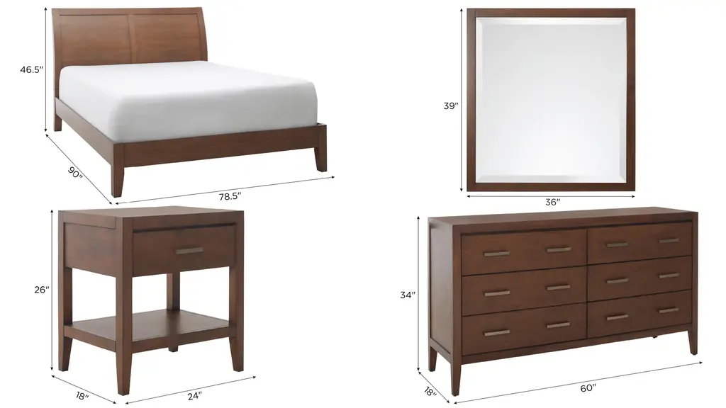 The Fremont 4-pc. Bedroom Set adds a warm and classic look to any bedroom. The bed features a panel headboard that provides a perfect back rest. The low profile of the platform bed makes it easy to slip into and out of. The clean lines and solid wood construction of this set make it a welcome addition to your sleep sanctuary. Plus, you'll have plenty of storage options to ensure all your clothes and items are organized and easily accessible.