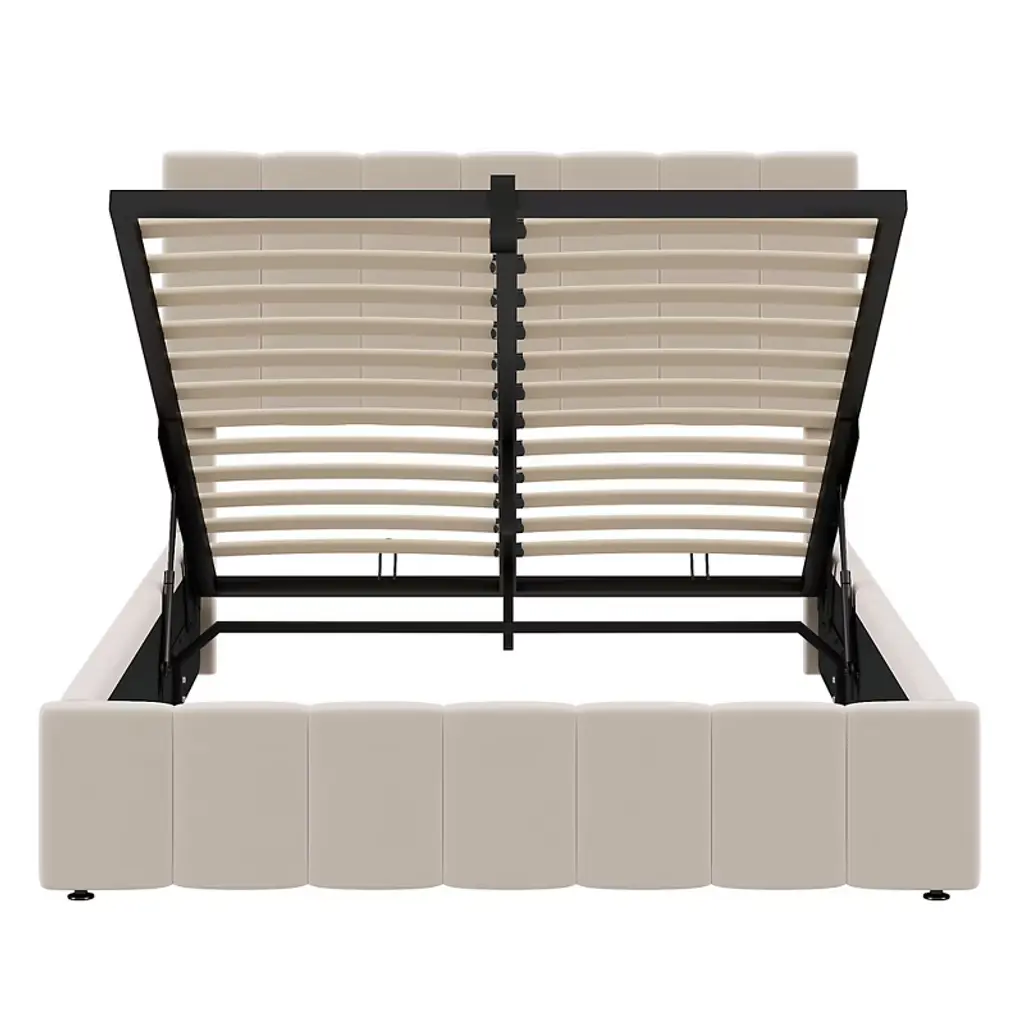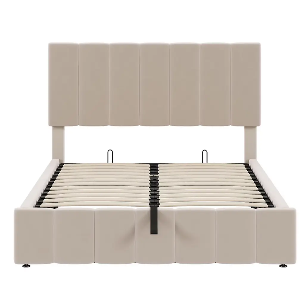 Full Size Upholstered Platform Bed With A Hydraulic Storage System - Beige