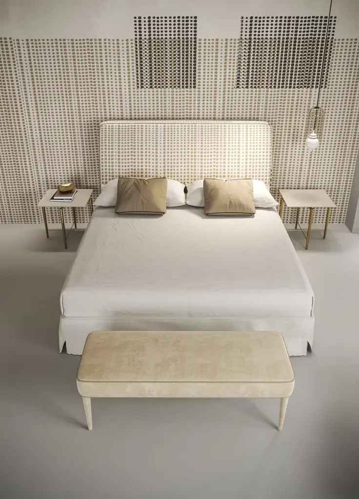 The price refers to the configuration shown in the photo. GAUTIER BED GTR02: Structure and headboard in 1.8 cm multilayer wood and fir wood. 3 cm plywood bed frame. Polyurethane padding. Network and wooden slats. Removable cover. Thread stitching. In this article it is possible to insert the container with Double lift mechanism.Momenti's Home & Contract collection offers a wide range of furniture products and accessories, all customizable. Each product can be customized through the choice of various details such as different bases or handles to make it unique. It is possible to choose between 3 Collections which include 36 graphics designed specifically for the Home & Contract collection. The result is a unique product, a mix of art and design, enhanced by a selection of refined and hand-crafted materials.Our furniture is created with: - wooden particle panels created by the use of salvaged wooden material, thus avoiding the cutting of new trees. Low-formaldehyde glues have been used for this product. - composite alluminium alloy panel, with an interposed core of polyethylene, the simplest of the synthetic polymers and the most present in nature.The working process takes place in full respect of the current environmental regulations. Our compound is then applied to these supports, which is made of non-toxic, odor-free, water-repellent and easy to clean resins.