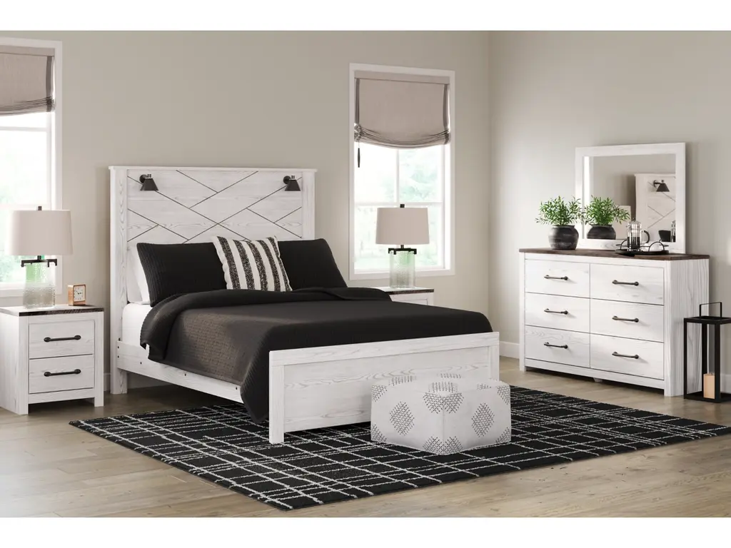 Cool, clean and casually modern. The Gerridan bedroom ’s wispy whitewash and gray finish sets the tone for your calming sanctuary. linear drawer pulls add dimension and authenticity, while the bed's abstract headboard design brings a fresh look to the set.