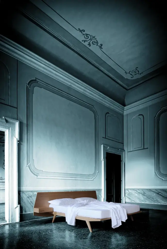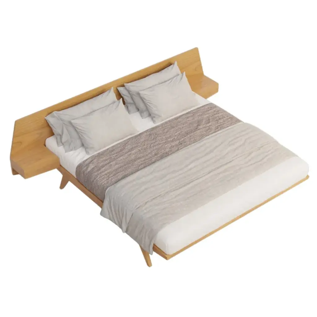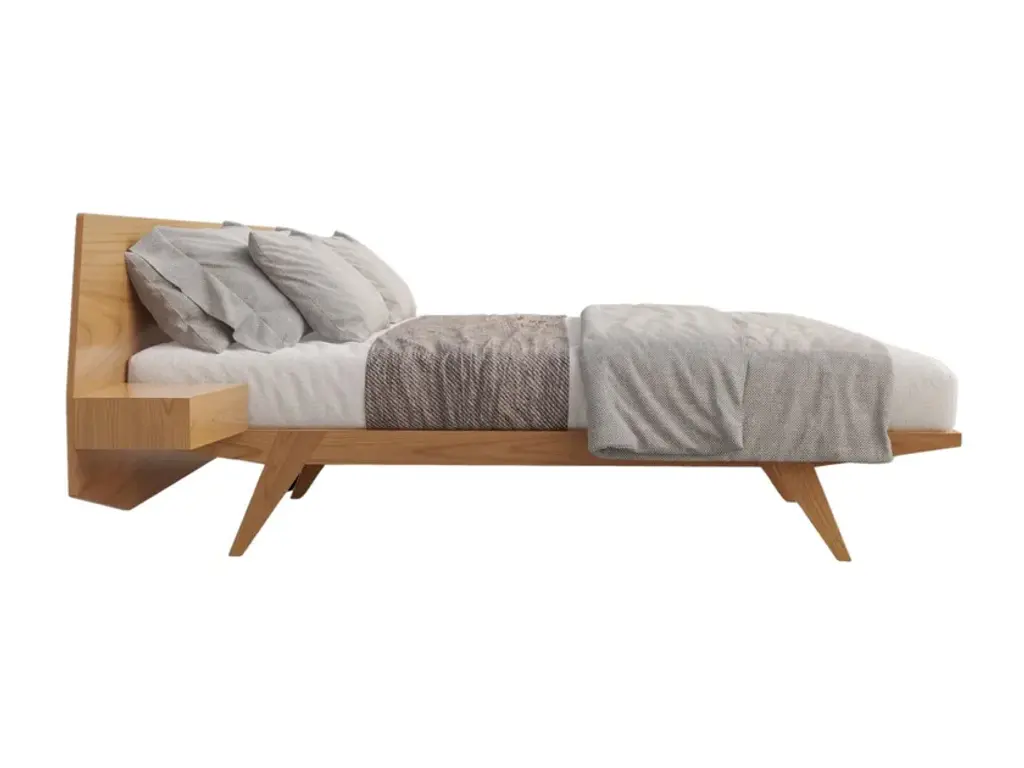 Giò - Double bed with wooden slats and headboard with bedside tables. Here presented in the natural finish.