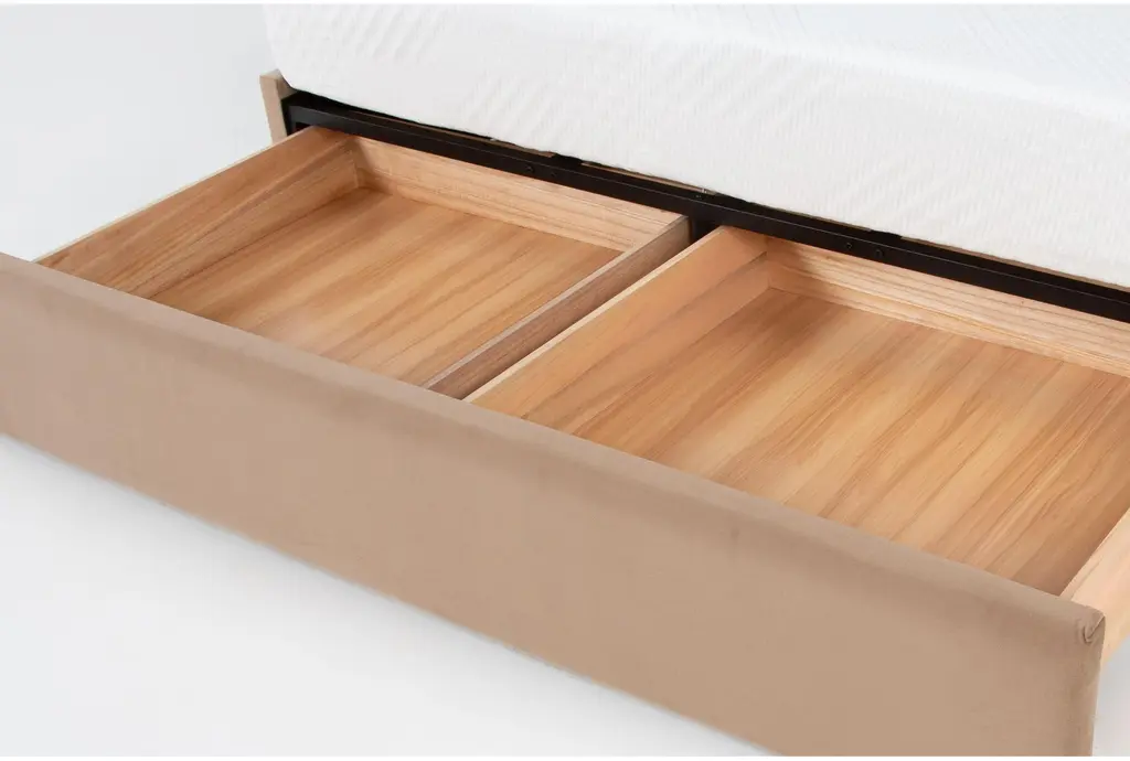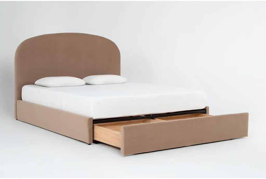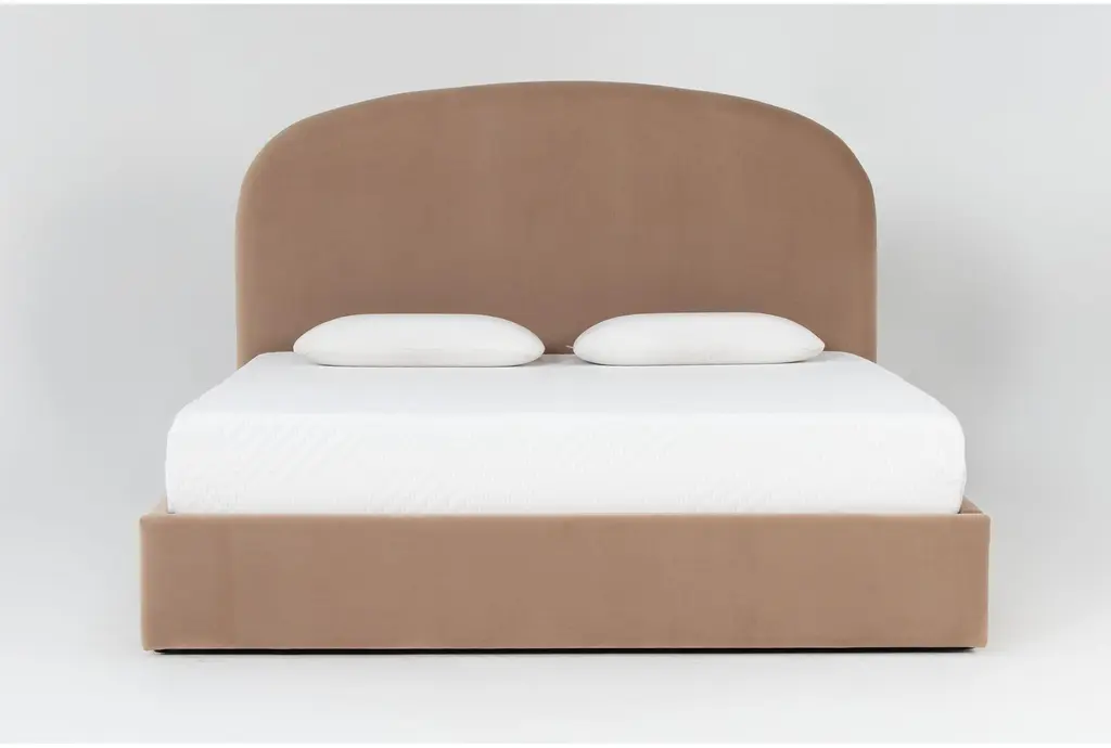 The Gio Queen Velvet Upholstered Arched Platform Bed With Storage is a stylish and functional addition to any bedroom. Its modern design and neutral beige color make it a versatile piece that can complement various decor styles. The velvet fabric adds a touch of softness and luxury to your sleeping quarters.