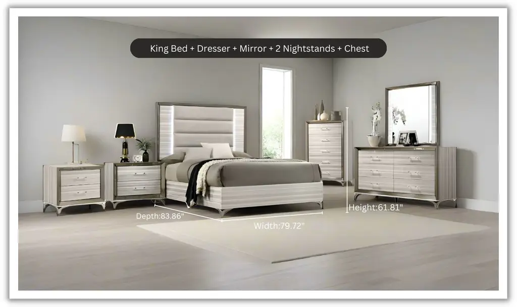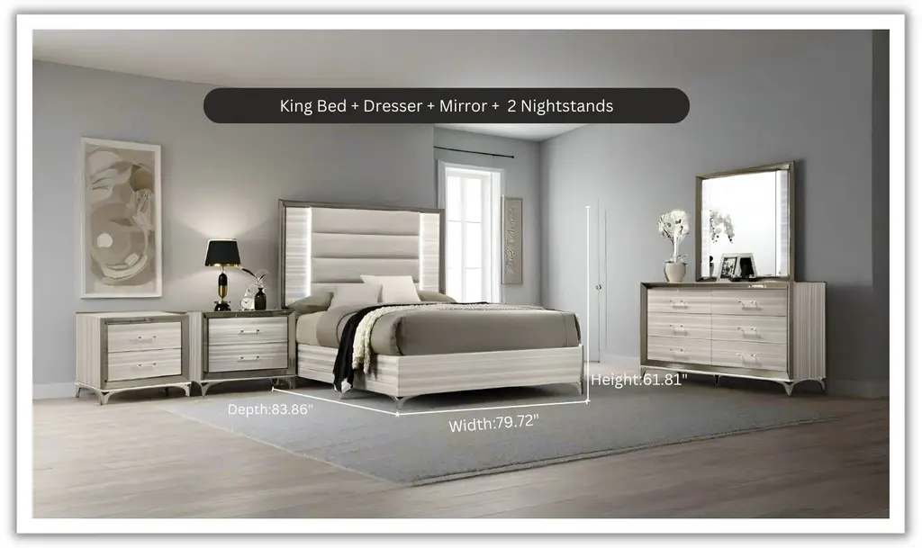Global Furniture Zambrano White Bedroom Set With Led (King / Queen Size)