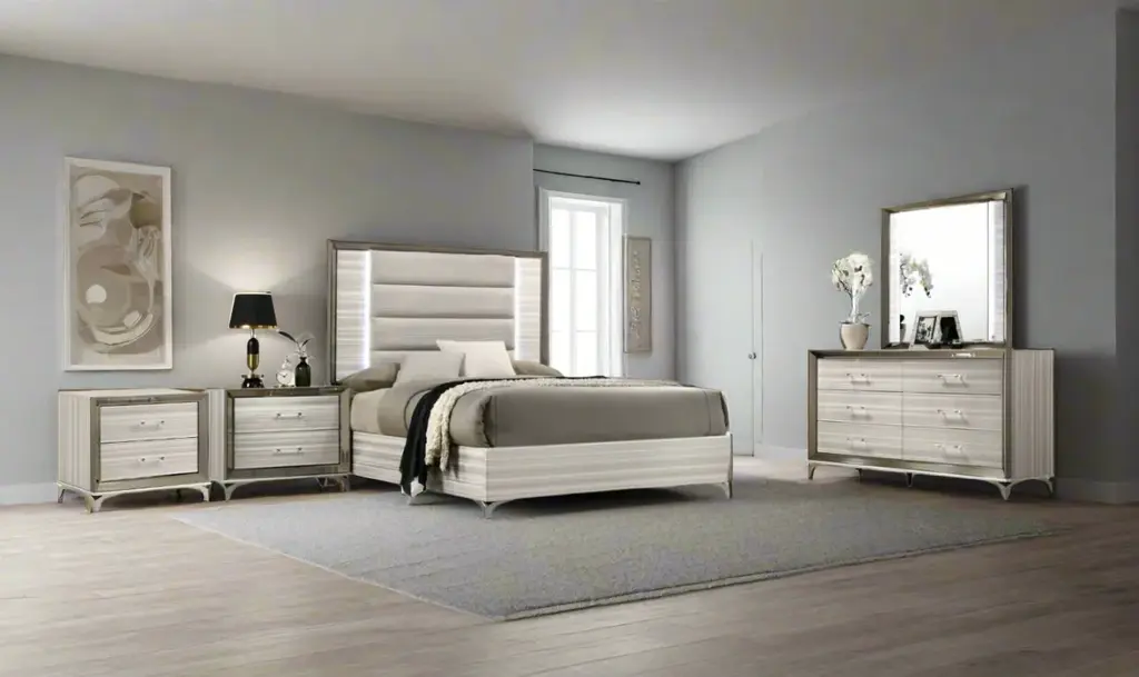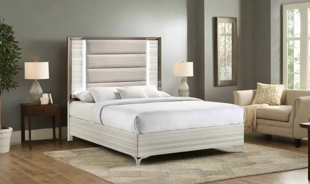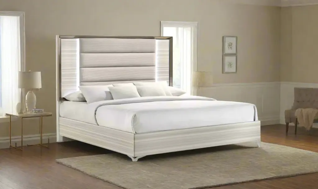 Global Furniture Zambrano White Bedroom Set With Led (King / Queen Size)
