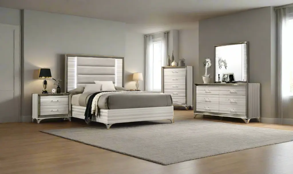 Global Furniture Zambrano White Bedroom Set With Led (King / Queen Size)