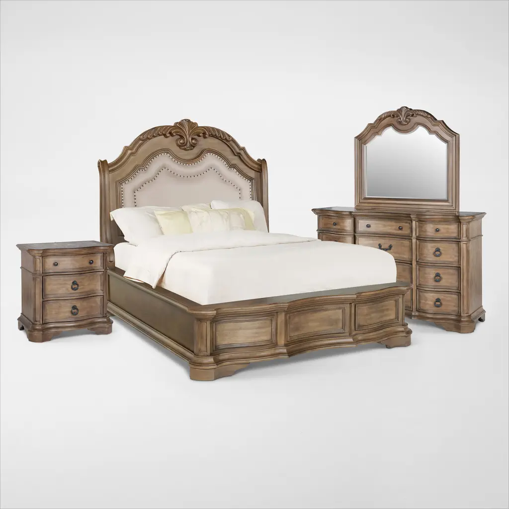 Gramercy Park 6-Piece Queen Bedroom Set With Nightstand, Dresser And Mirror - Sandstone