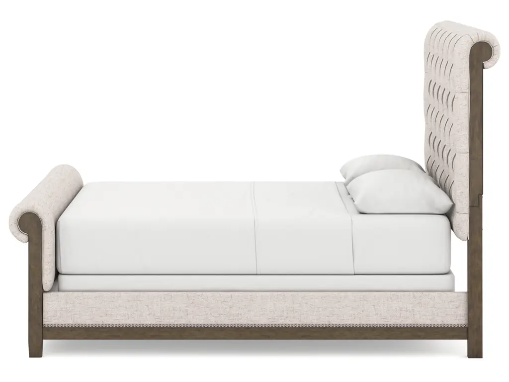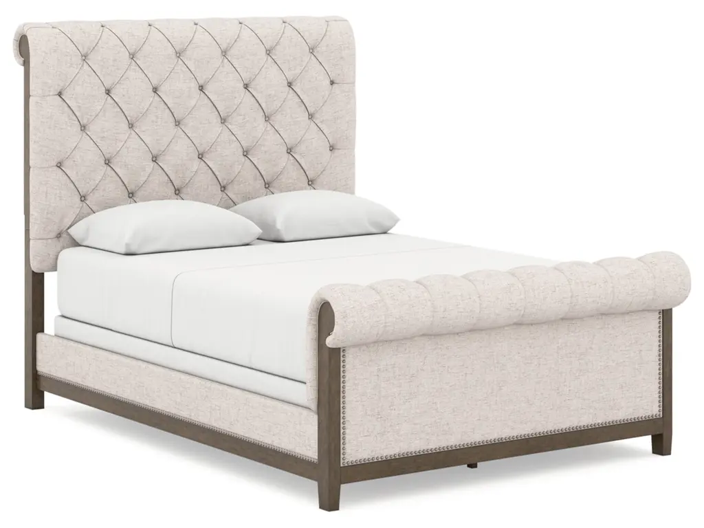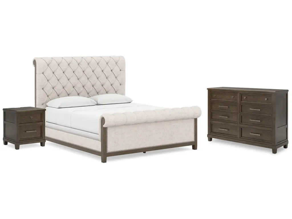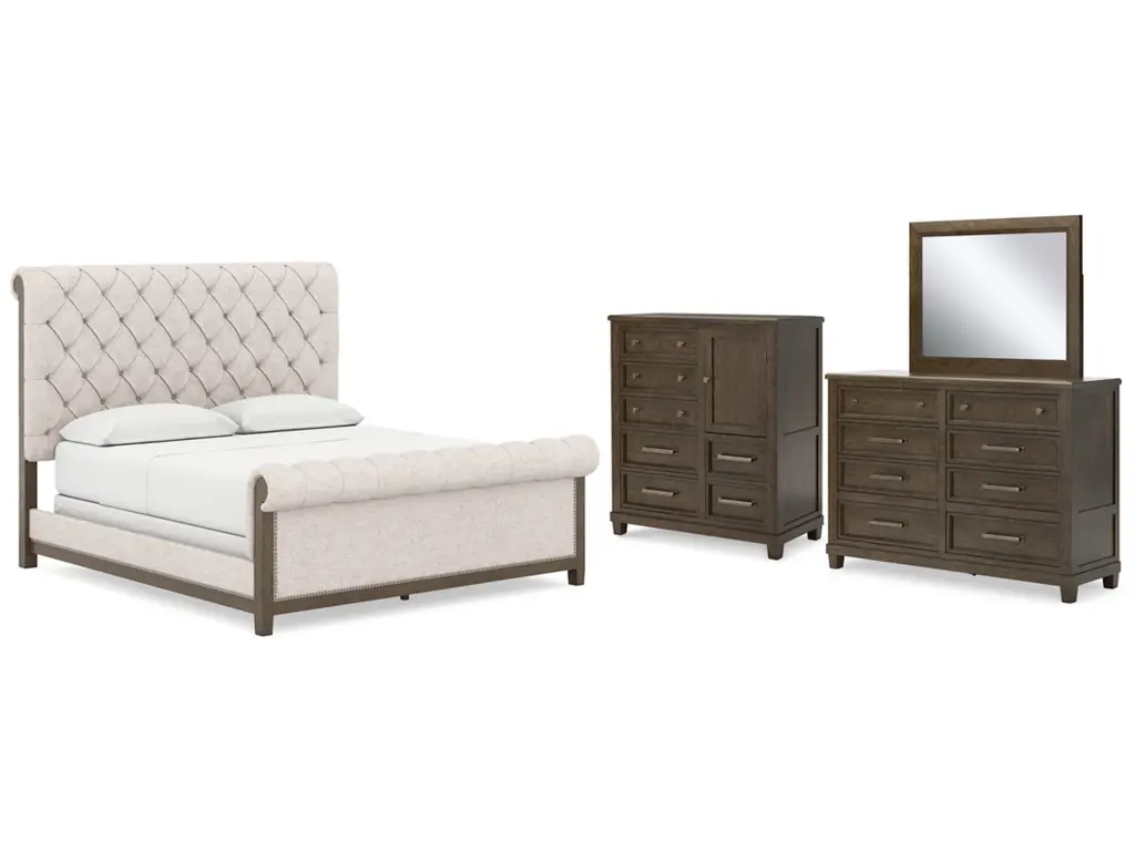 Hillcott Queen Upholstered Bed With Mirrored Dresser, Chest And 2 Nightstands