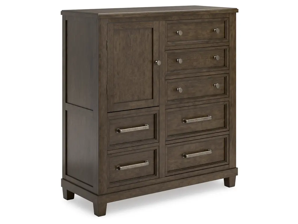 With its dark brown wood finish, the Hillcott bedroom package gives modern farmhouse styling a substantial sensibility. Stunningly subtle touches elevate this collection into a statement set that’s timeless, functional and versatile. Rich in character and function, you’ll love its up-to-date take on charming design.