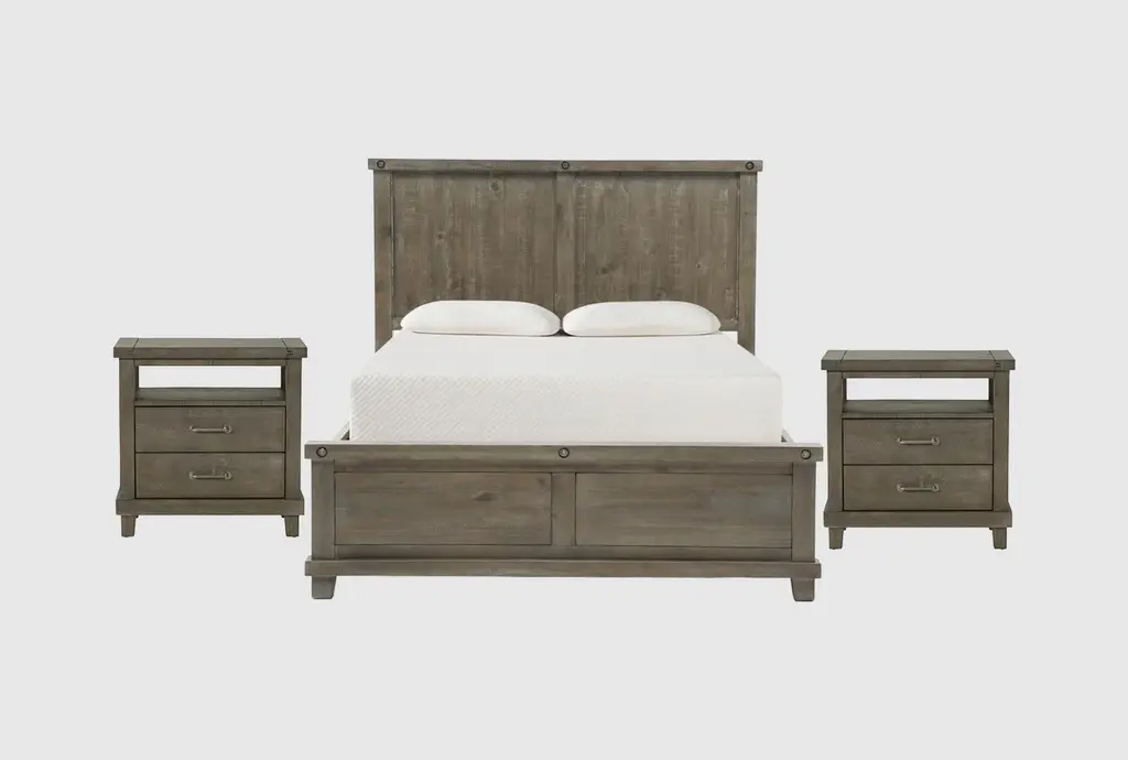 Jaxon Grey California King Wood Panel 3 Piece Bedroom Set With 2 Open Nightstands | Adjustable Base Compatible | Pine