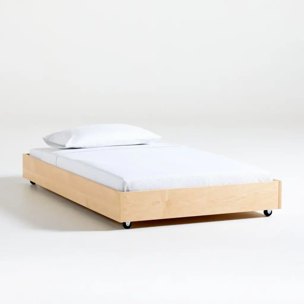 A bestseller for a reason, our Jenny Lind Spindle Bed is a showstopper in any bedroom. And this maple finish makes it even more elegant and earthy. The iconic collection, with its intricate wood turnings, has been made in the same location with the same classic design for more than 20 yearsbut its modern sensibility means it hasn't aged a day. Each spindle is made from a single piece of wood, then hand-sanded to capture every gorgeous detail. The included trundle is perfect for sleepovers and shared-room situations (and can also be used as space-saving underbed storage). When it's not in use, this functional piece simply tucks away beneath the bed. Fun fact: This forever classic is named for the 19th century opera singer Jenny Lind, who was the pop icon and influencer of her day.