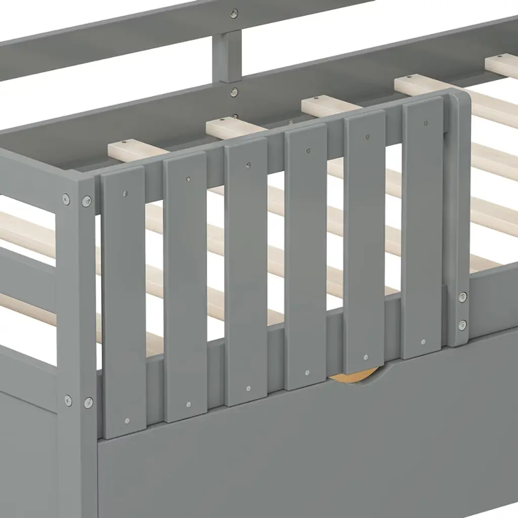 Kigftsod Twin Bed Frames For Kids,twin Size House Bed With 2 Storage Drawers And Guardrails,gray
