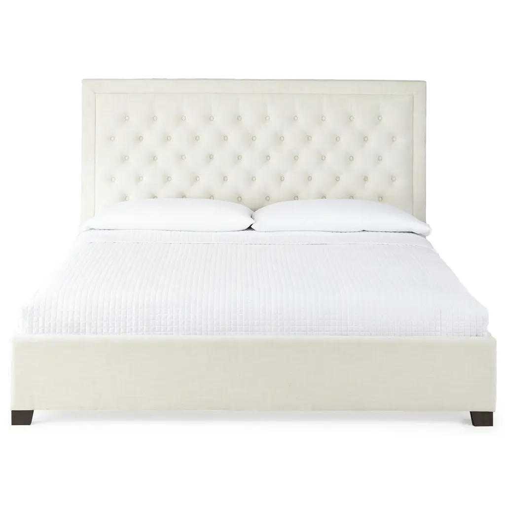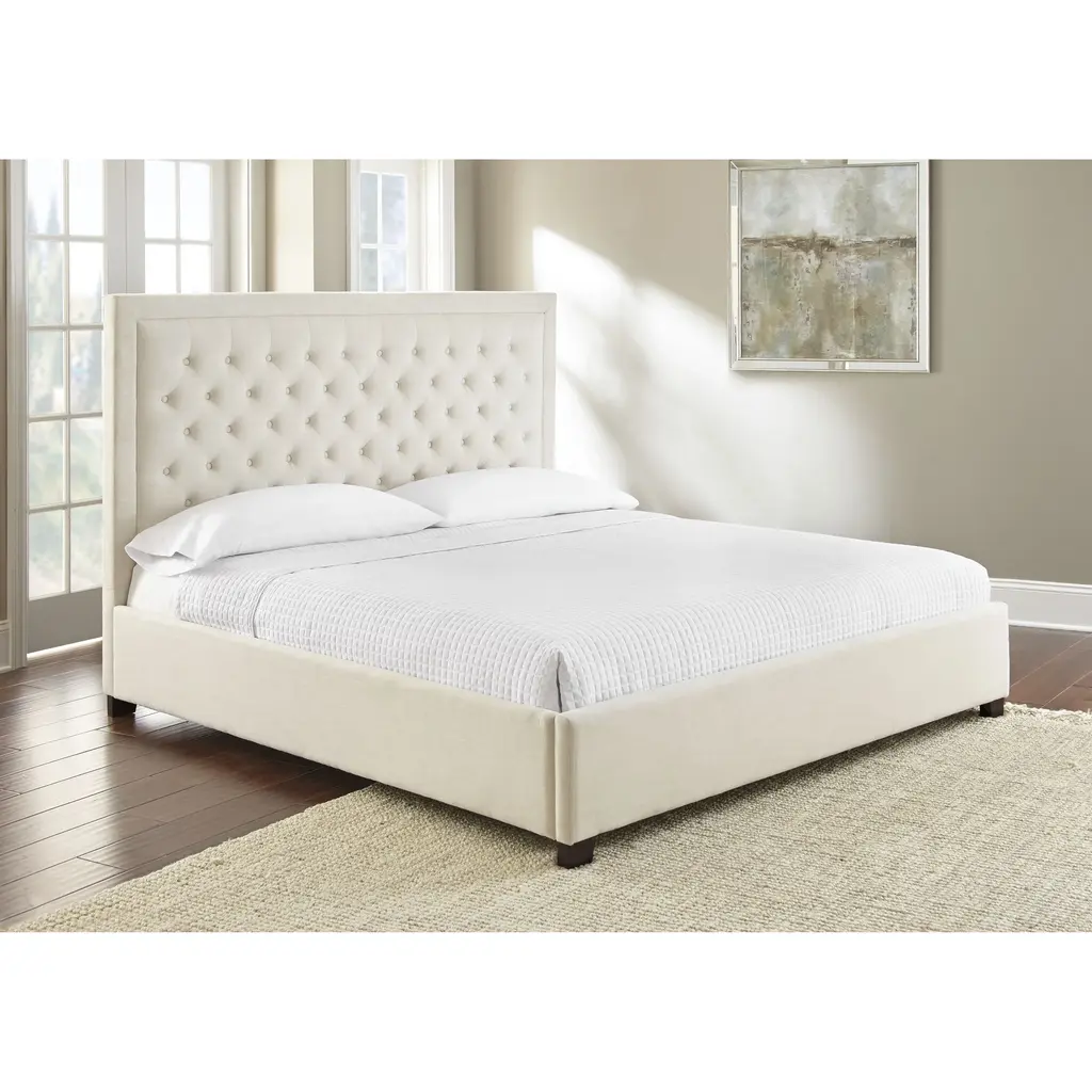 Its clean lined design complete with stylish details, such as the button tufted headboard, create the sophisticated look for this king size upholstered bed. The bed's transitional style is a unique mix of classic sophistication and modern flair. This ensures that no matter how you style your bedroom this bed will continue to bring a regal feel to your room.