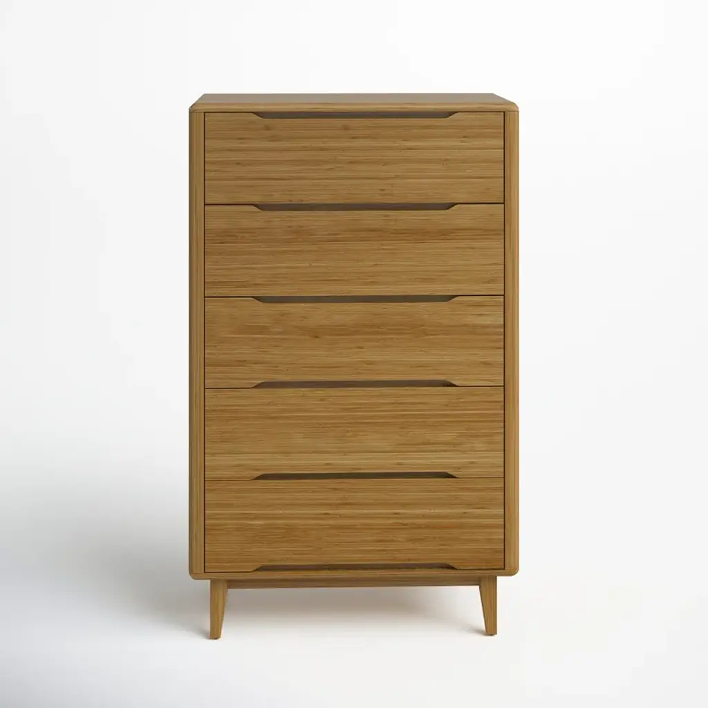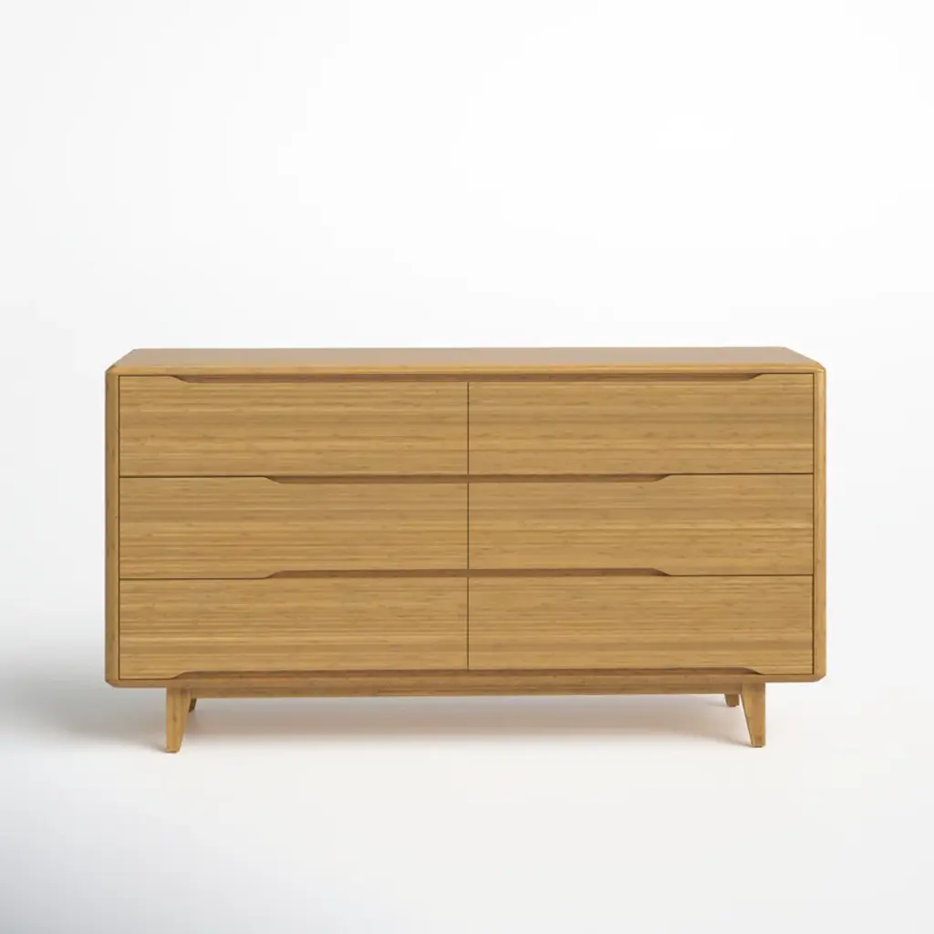 Soft + warm. With its rounded lines, wood grain tones, and tapered legs, this bedroom set draws inspiration from retro Scandi styles. Built from hand-finished bamboo, the pieces showcase coordinating cutouts for understated visual dimension; choose what you need to complete your space.