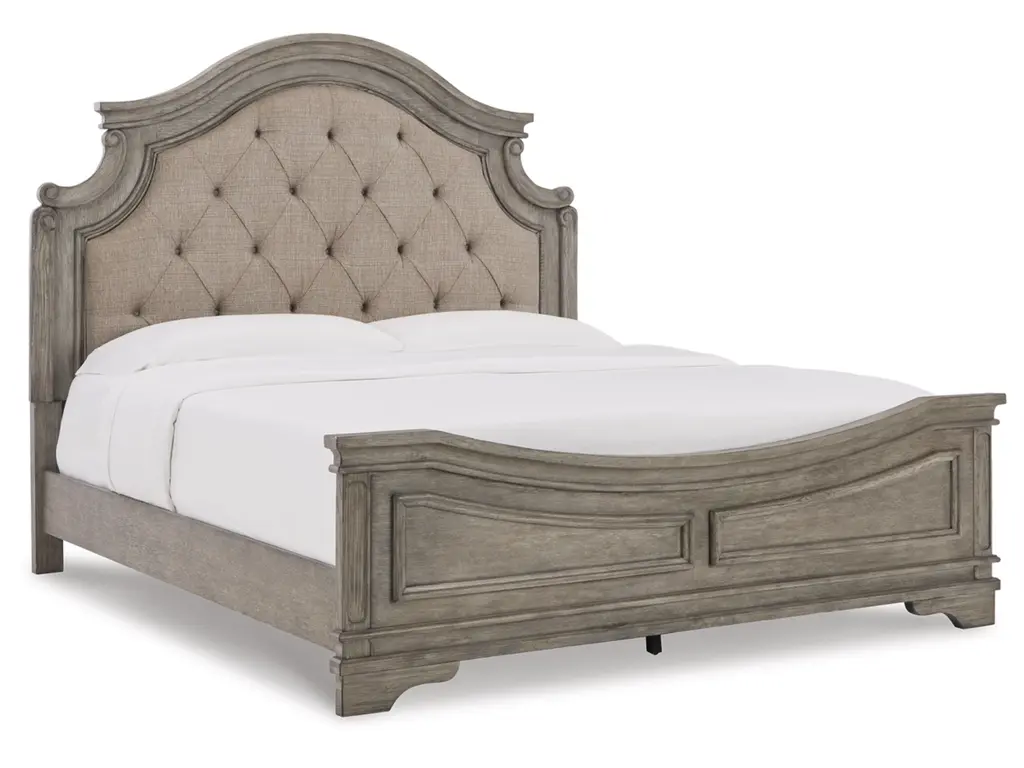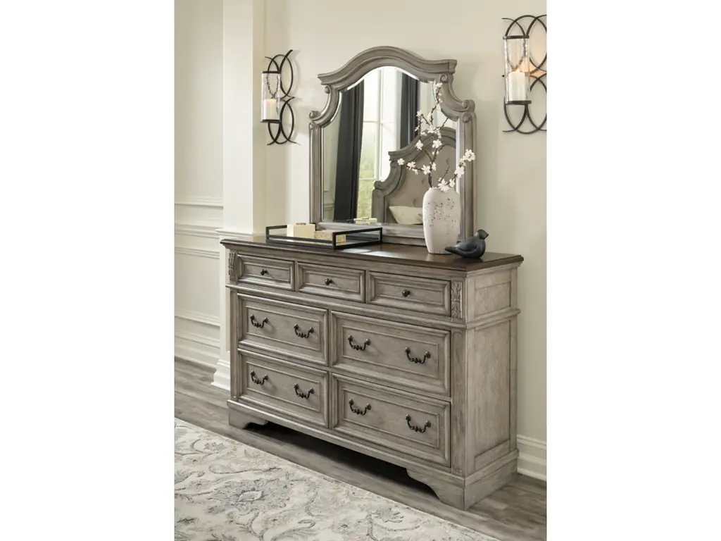 Cottage quaint styling and quality construction make the Lodenbay bedroom package a dream come true. A two-tone finish provides natural warmth, with an antiqued gray body and a rich, deep walnut on top. Framed drawer fronts and dark bronze-tone hardware marry classic elegance and homey charm.