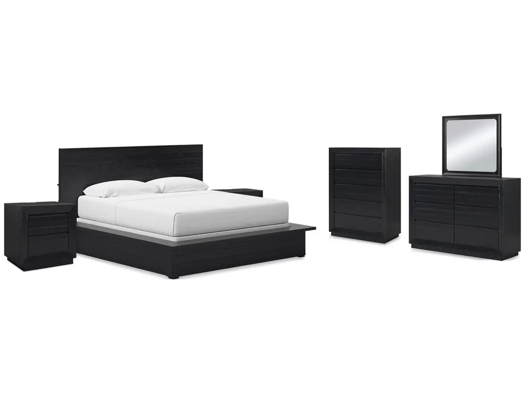 Londer King Panel Bed With Mirrored Dresser, Chest And 2 Nightstands