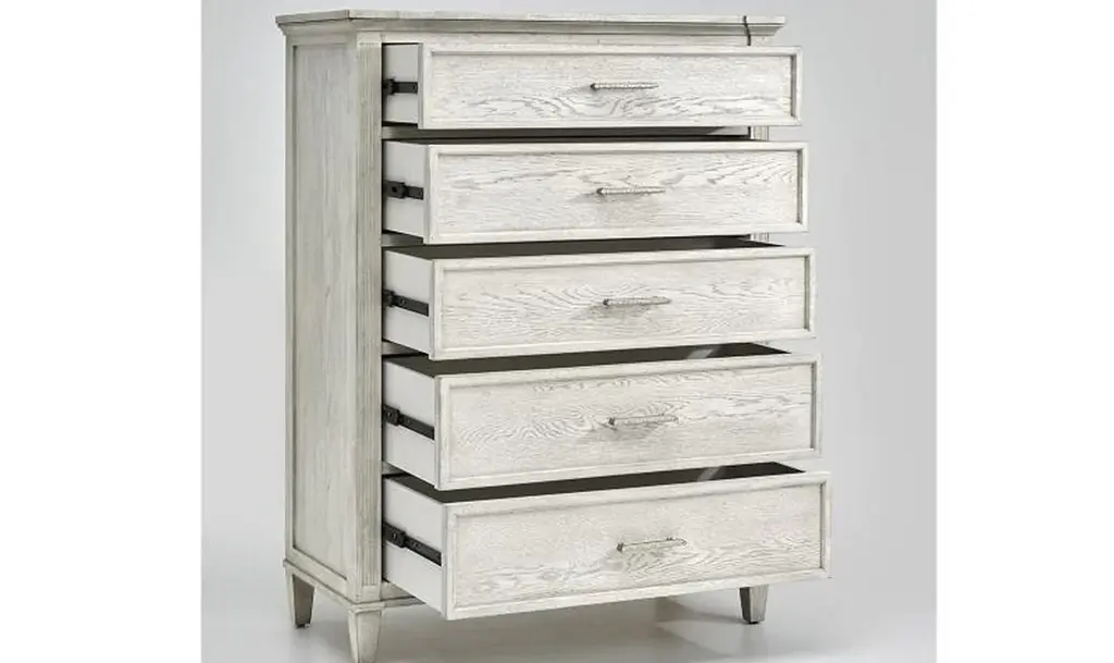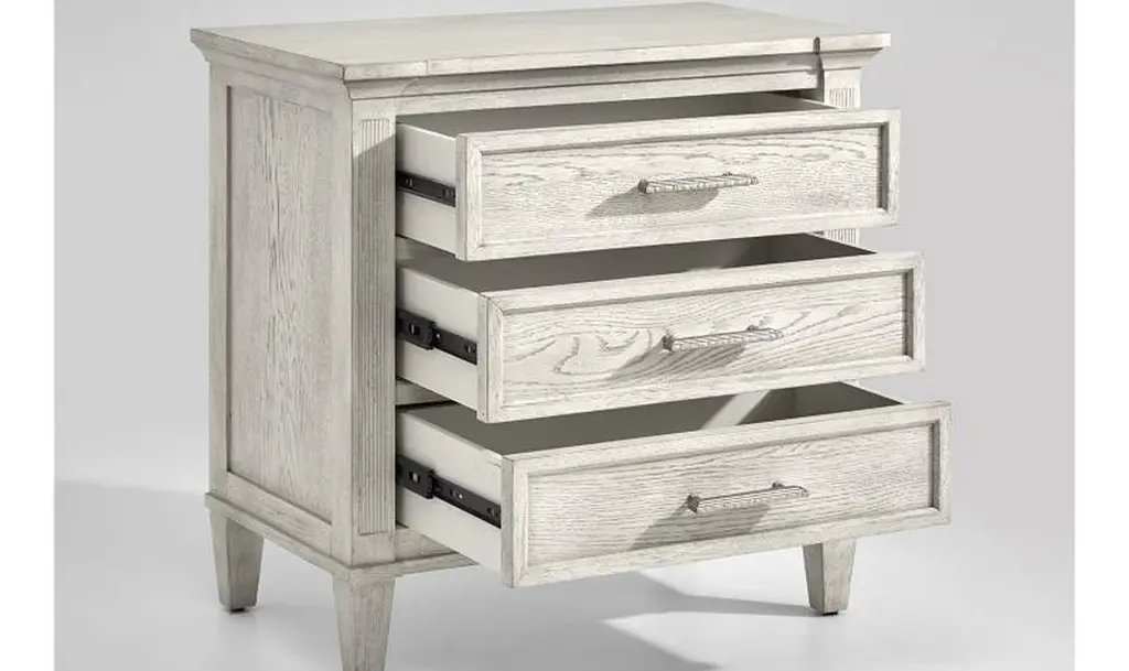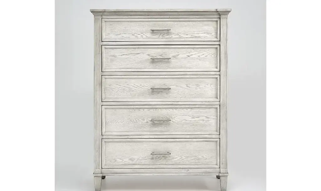 When designing this group we took style cues from traditional architecture and modernized them with crisp lines and soft color tones. Our intent was to design a modern cottage bedroom that is at home in a relaxed casual, yet traditional home by the water or in the country. The many design elements include tight reeding on posts and panels, proud posts that provide depth and architecture, and captured overlay panels or gentle sleigh shapes on the beds. Beads have been squared off for a cleaner “New Traditional” vibe. The upholstered beds feature Culp's Dinara fabric. Making the most of the classic oversized basket weave, Dinara features a varied yarn blend of polyester, rayon, and linen. This yarn-dyed cloth is sophisticated yet simple, creating a casually comfortable look.