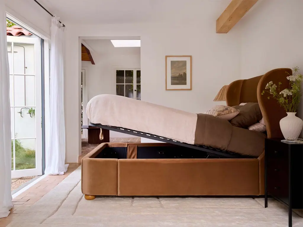 The inspiration for Maxwell "was to take a traditional shape and make it fresh," says Apartment Therapy founder Maxwell Ryan, who co-created the design with us. That means you'll enjoy a custom bed that's "comfy, cozy, and approachable," with a curved shelter headboard in a classic wing profile shape and a discrete lift up storage option for spaces big and small. Box springs are optional with Maxwell's slat support system. Not compatible with adjustable frames. Queen bed dimensions: 67.5" W x 88.5" D King bed dimensions: 83.5" W x 88.5" D California King bed dimensions: 79.5" W x 92.5" D