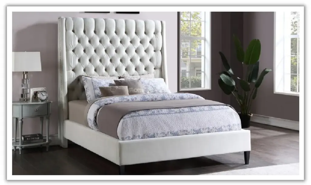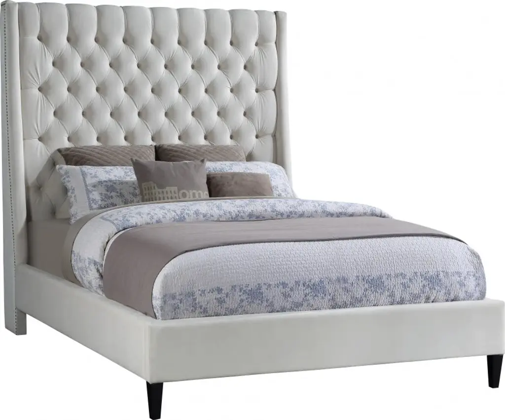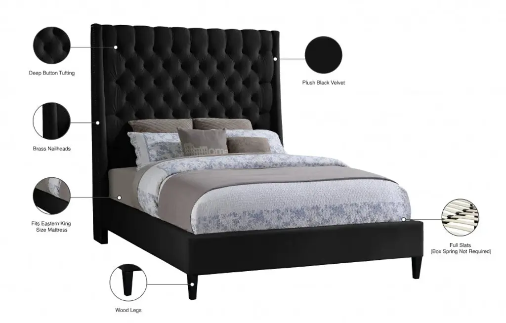 Meridian Furniture Fritz Velvet Bed With Tufted Wingback Headboard