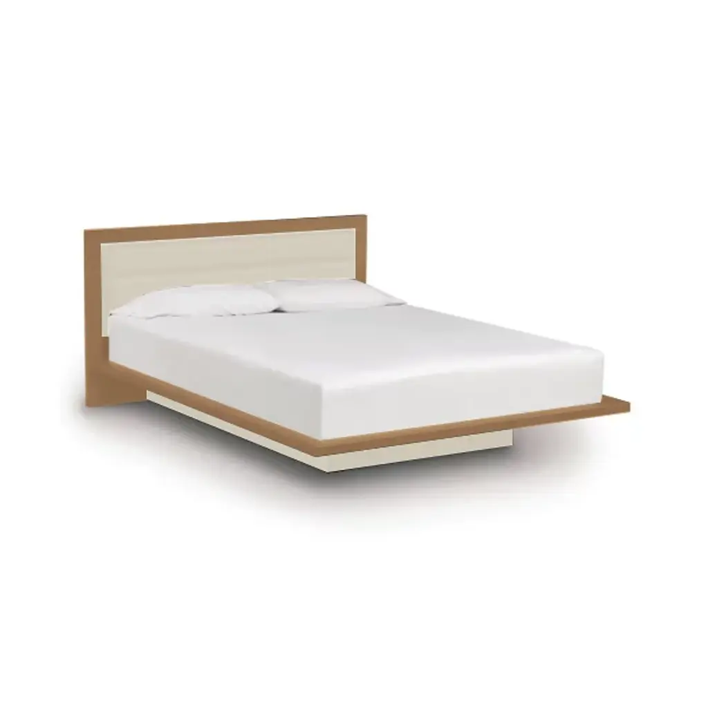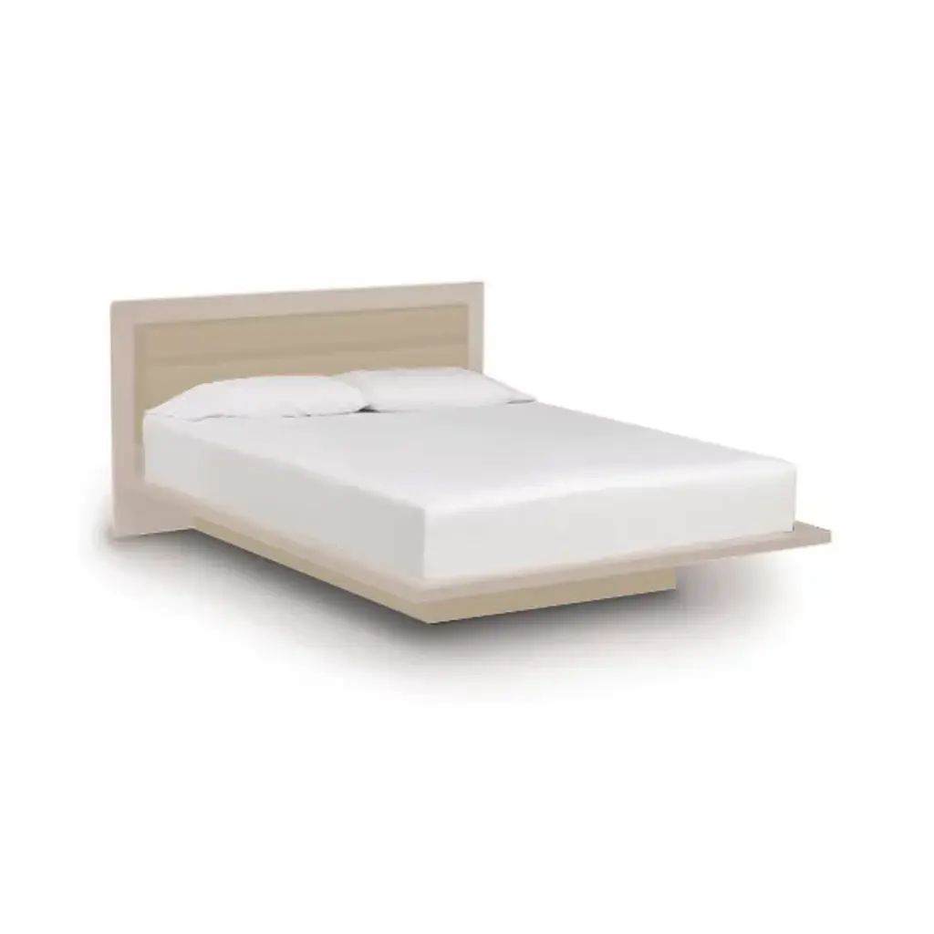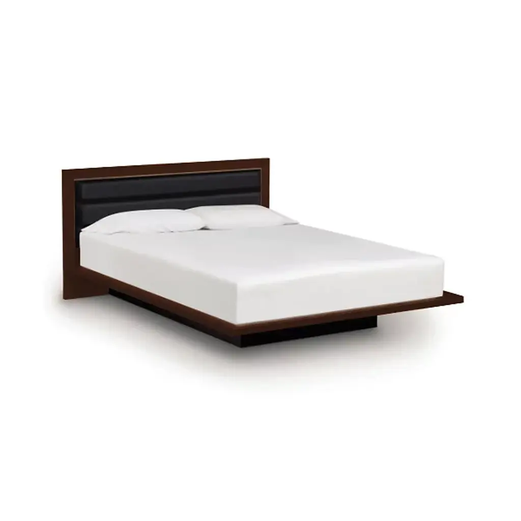 Made in Vermont by Copeland Furniture. The Moduluxe 35-Inch Platform Bed with Microsuede Headboard is a modern platform bed with a softly upholstered inset headboard. The cozy yet crisply styled silhouette features solid maple, cherry or American black walnut hardwood construction with an inset headboard in tufted microsuede, offered in five colors. A deeply set plinth base gives the bed its visually stunning floating motif. The Moduluxe Platform Bed with Microsuede Headboard is designed for use with a mattress only (recommended mattress height - 10”) and is available in Queen, King or Cal King sizes. Select bed size and wood color/finish in one of two satin surface finishes: standard Copeland Lacquer top coat or formaldehyde free Copeland Water Based top coat. Then select Microsuede color. Copeland Furniture's Moduluxe Series offers sectional furniture for the bedroom. This highly configurable bedroom and storage system adapts to most spaces and needs. The Moduluxe Platform Bed with Microsuede Headboard is a stylish standalone piece or may be.