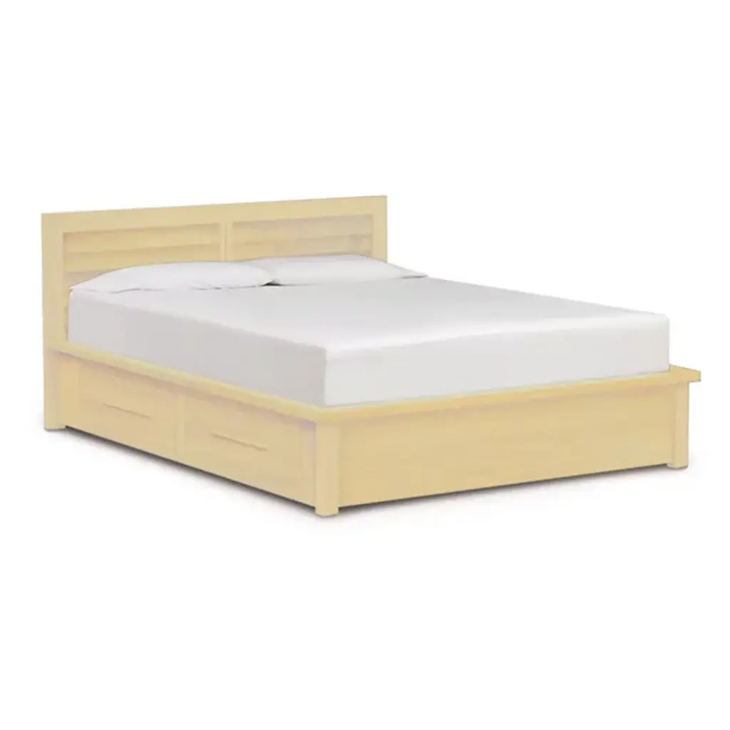 Storage and style all in one. The Moduluxe 35-Inch Storage Bed with Clapboard Headboard from Copeland Furniture gives you both an excellent place to sleep and ample storage space. Perfect for linens, spare pillows, and clothing, this solid wood bed frame comes equipped with four drawers. Each drawer is 8” deep to give you plenty of space to store your items. It is recommended that a mattress 10” high (not included) be used with this product, and it doesn’t need a box spring.