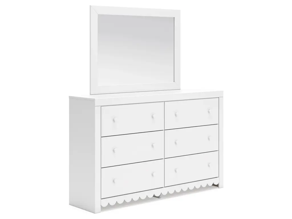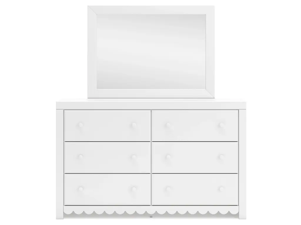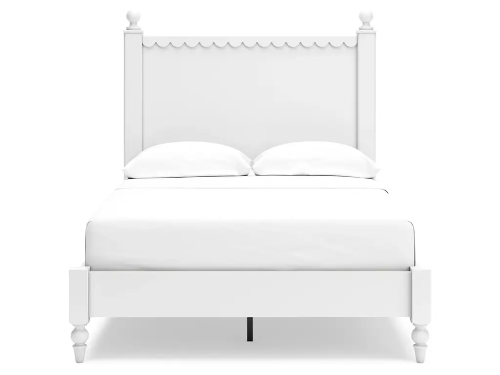 Make morning or bedtime that much more magical with the Mollviney bedroom package. Charmingly cute with its scalloped detailing, it appeals to both her sense of playful whimsy and your love for modern design. A crisp white finish gives you the versatility to pair the set with existing decor.